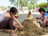 Отдыхающие на пляже семьи, студенты, школьники, дети, соревновались в строительстве замков из песка.