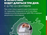 При этом статус единого дня голосования сохраняется за 13 сентября, говорится в постановлении ЦИК РФ о порядке досрочного голосования.