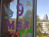 Портреты ветеранов, рисунки на военную тематику, а также слова благодарности украшают окна жилых домов и образовательных учреждений.