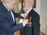 Ветеранга истәлекле бүләкне ТР Дәүләт Советы депутаты Олег Коробченко тапшырды.