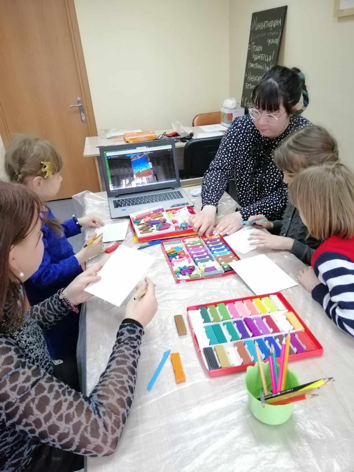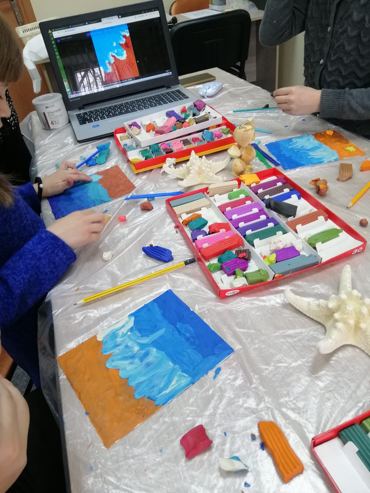 Дети были увлечены оригинальной работой, потому что пластилин легко придает нужную форму и размазывается по твердой поверхности.