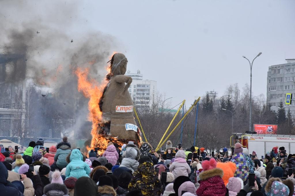 Кульминацией народного гуляния «Проводы зимы - Масленица» стало сжигание соломенного чучела, символизирующего уход зимы и наступление весны.