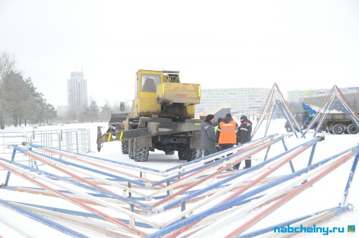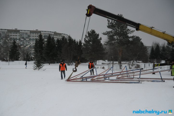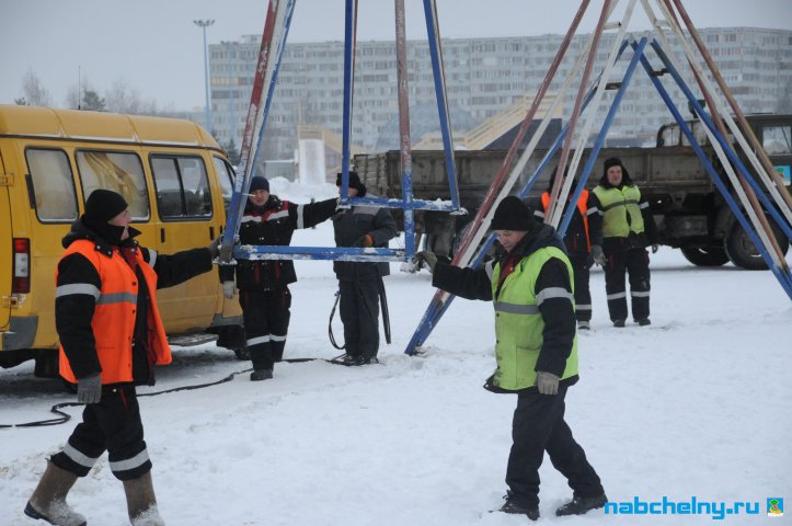 Специалисты МУП «Горсвет» приступили к демонтажу новогоднего городка на главной городской площади Челнов. Сегодня начали разбирать главную елку города, световые ограждения, иллюминацию на деревьях. По словам руководителя предприятия Разифа Гильфанова, если монтаж новогодних фонарей занимал около 3 недель, демонтаж должен завершиться значительно быстрее, но все зависит от погодных условий: при температуре свыше 25 градусов работы останавливаются.
