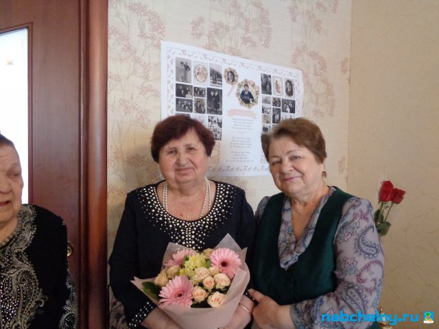 От имени президента Российской Федерации Владимира Путина и мэра города Наиля Магдеева юбиляра поздравили заместитель главы Автозаводского района Елена Альмухаметова, председатель Совета ветеранов Любовь Ходаковская, председатель первичной ветеранской организации 28 микрорайона Людмила Гадалина, председатель ТОС Люзия Мустафина и сотрудники скорой помощи.