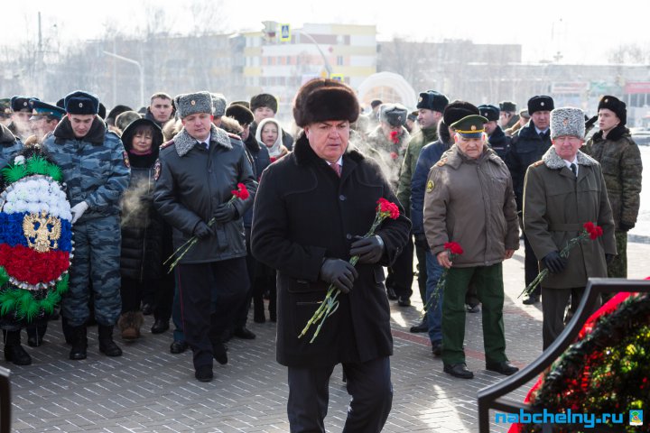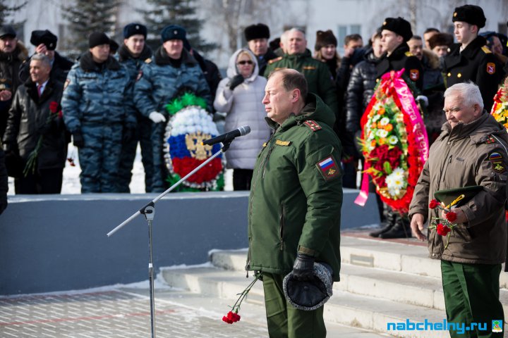 У мемориала "Родина-мать" Набережных Челнов состоялось торжественное мероприятие в честь Дня защитника Отечества и 100-летия создания Красной армии. Собравшихся с праздником поздравили мэр Набережных Челнов Наиль Магдеев, военный комиссар Центрального и Автозаводского районов города Рашид Ильясов, начальник управления МВД России по г. Набережные Челны Надир Закиров, заместители руководителя Исполнительного комитета города.