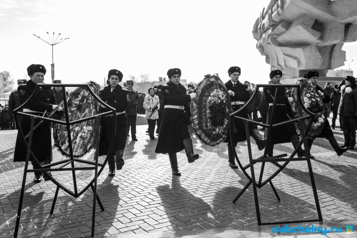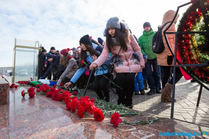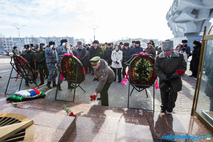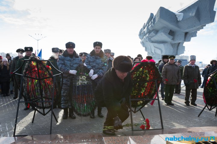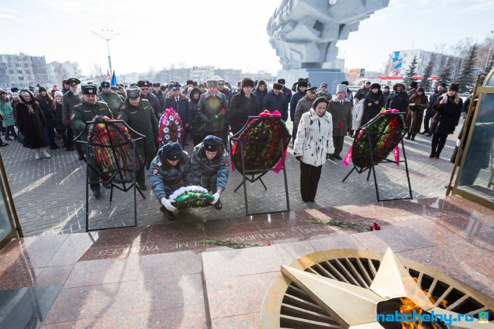 В завершении торжественного мероприятия после минуты молчания по погибшим в войнах и локальных конфликтах Наиль Магдеев возложил венок к Вечному огню. Цветы и венки также возложили представители администрации города, Городского Совета, Совета ветеранов, Военного комиссариата, учащиеся школ, руководители предприятий и учреждений Набережных Челнов.