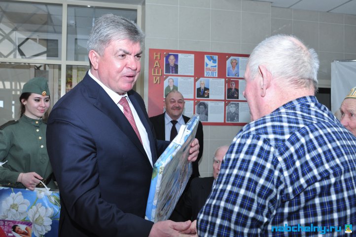 Наиль Магдеев в приветственной речи произнес слова благодарности ветеранам: «Хочу выразить слова признательности за то, что сделали вы – отстояли нашу страну, восстановили её, чтобы новое поколение смогло жить, развиваться, радоваться жизни. Мы пользуемся условиями, которые создали вы. Мы, современное поколение можем работать и созидать. Сегодня Набережные Челны - столица автопромышленности страны. Город крепко стоит на ногах. Растет численность, развивается промышленность благодаря вашему подвигу, совершенному в те далекие годы. От имени руководства города, республики, горожан хочу поздравить с настоящим великим праздником». Также Наиль Магдеев поблагодарил сотрудников Госпиталя, которые вкладывают усилия в реабилитации больных, отличаются неравнодушием. Позже он вручил присутствующим ветеранам подарки.