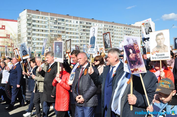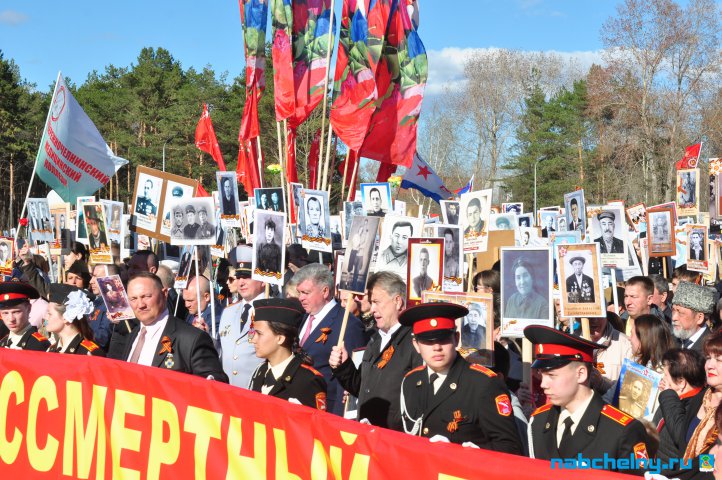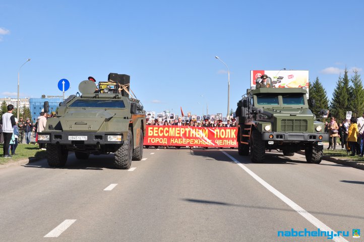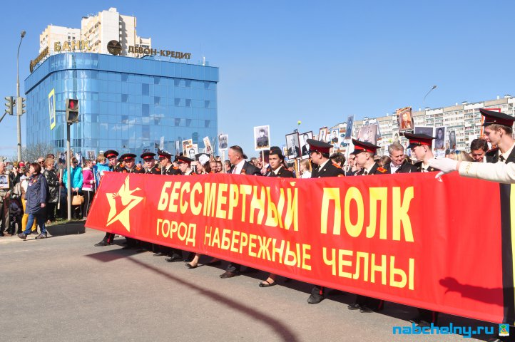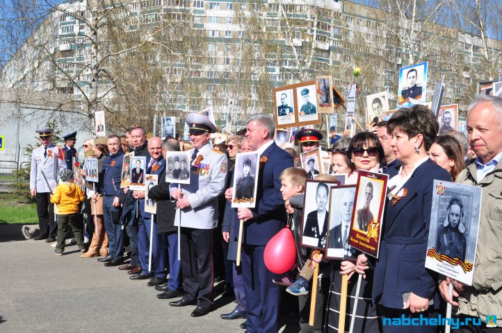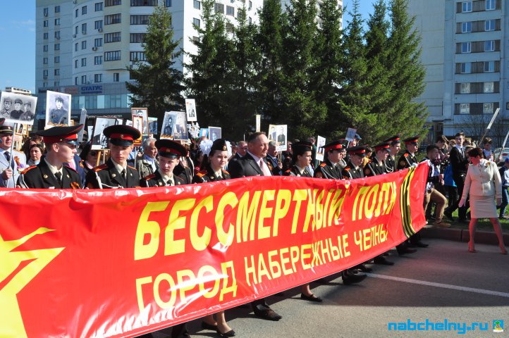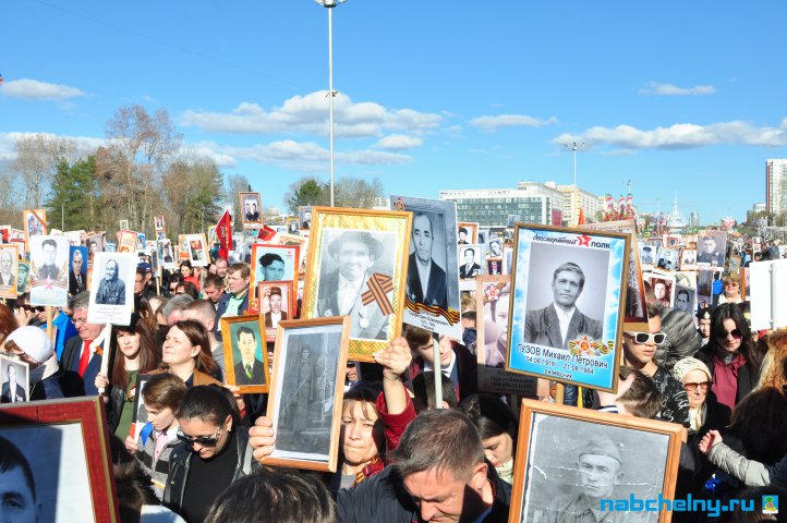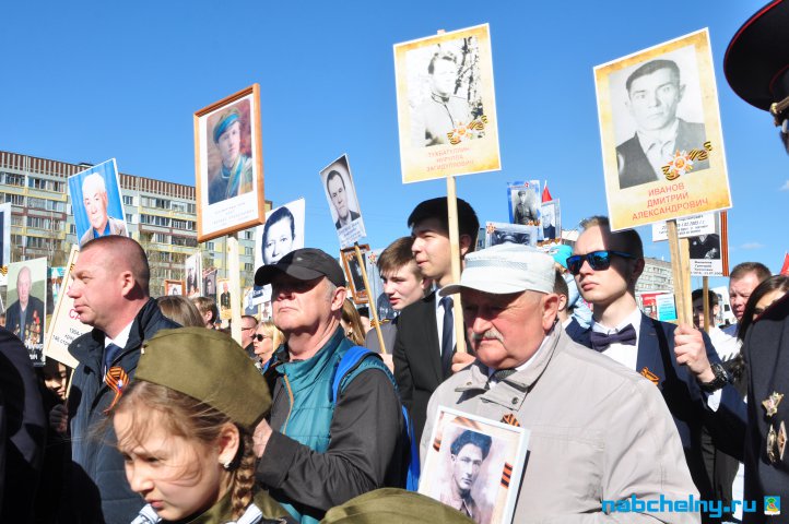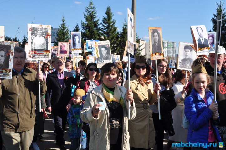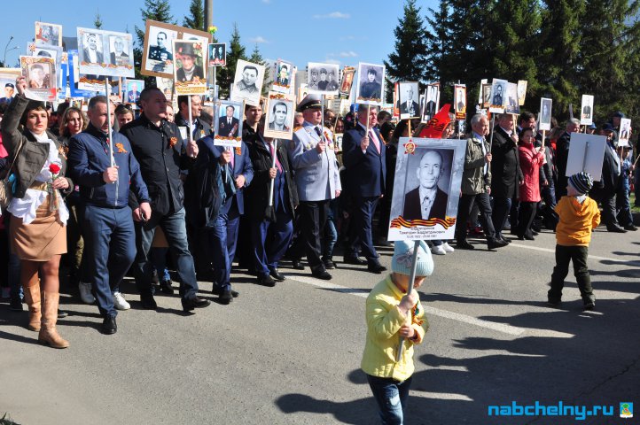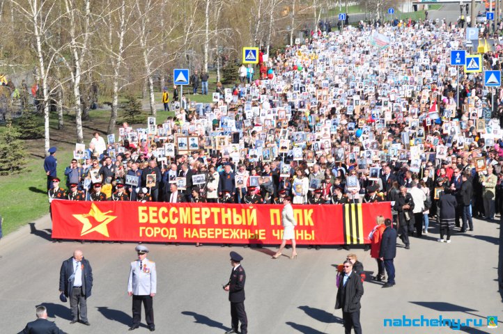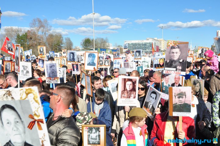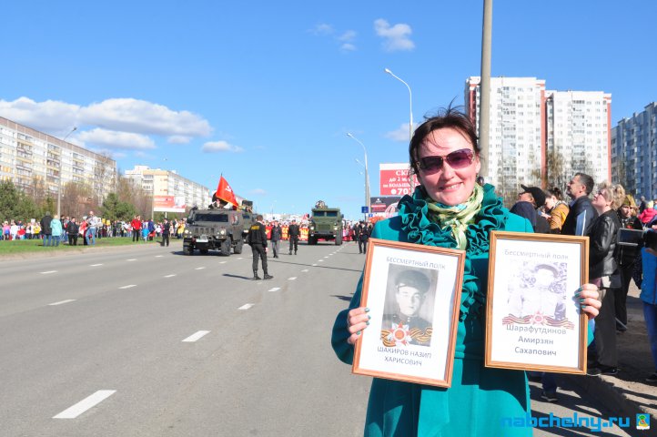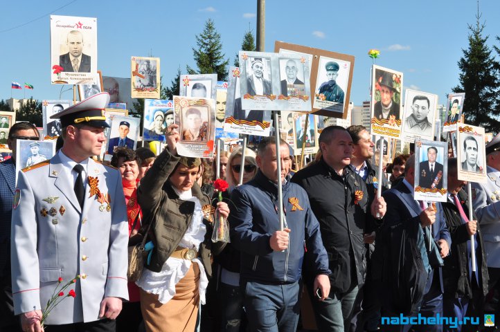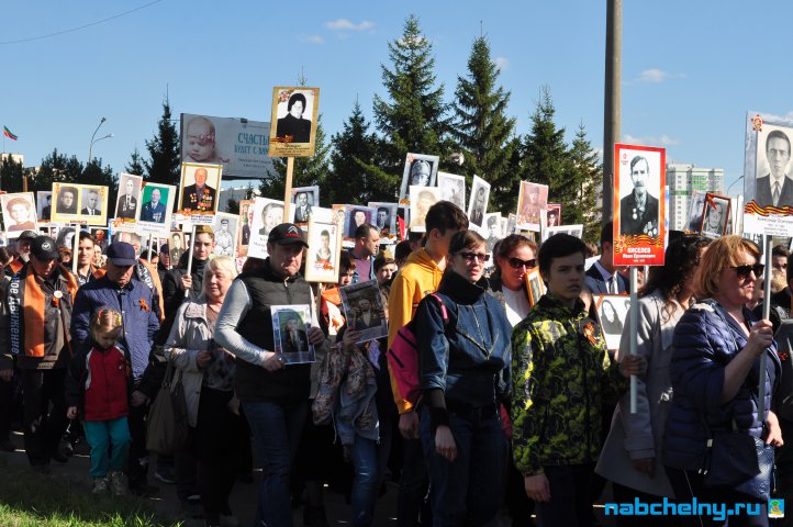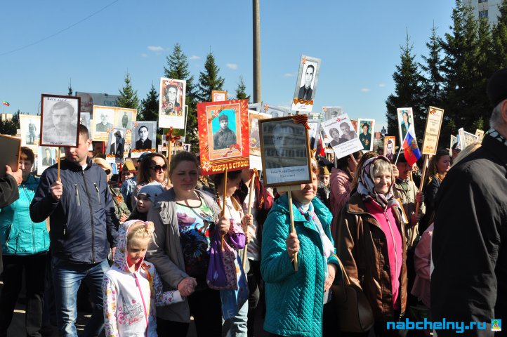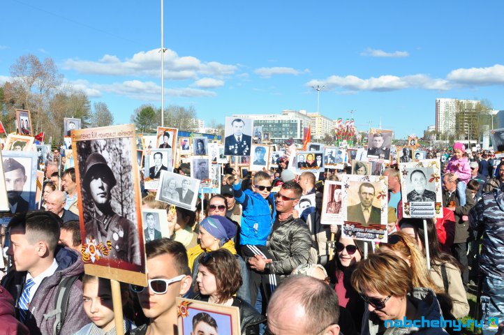 Сегодня тысячи челнинцев вышли для участия в российской акции "Бессмертный полк". Она началась в российских городах в 15:00. Построение в колонны началось за один час до начала. Ровно в назначенное время движение колонны началось от мэрии города по проспекту Хасана Туфана до майдана парка Прибрежный.  Участники держали в руках транспаранты с фотографиями родственников, которые участвовали в Великой Отечественной войне. Те, у кого не сохранились портреты родных фронтовиков, указывали лишь данные. Некоторые вышли на "Бессмертный полк" семьями и поочередно несли по два-три транспаранта. Проникнувшись величием события, в акции приняли участие не только челнинцы, но и родственники участников Великой Отечественной войны, из соседних населенных пунктов.
