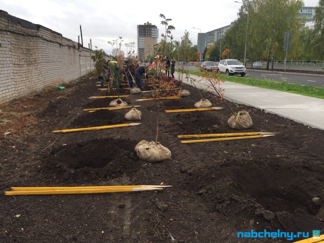 Сотрудники Исполнительного комитета вышли на средник, чтобы навести порядок и посадить деревья на улице 40 лет Победы. На территории улицы и вдоль детских садов 53 комплекса было посажено 30 рябин и 30 берез.