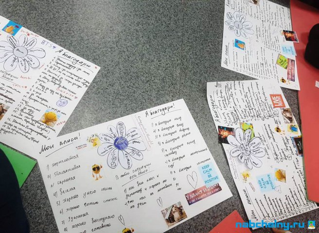 Ребята вместе учились позитивному взгляду на жизнь и на самого себя. Искали в себе плюсы и достоинства, пытались понять, что же есть в жизни каждого из них замечательного, за что можно быть благодарным себе и судьбе. В первой части занятия ребята участвовали в тренингах, играх на внутреннее расслабление и сплочение, а во второй части – заполняли «позитивный» плакат, в котором надо было перечислить свои плюсы, а также все позитивное, что происходит в жизни.