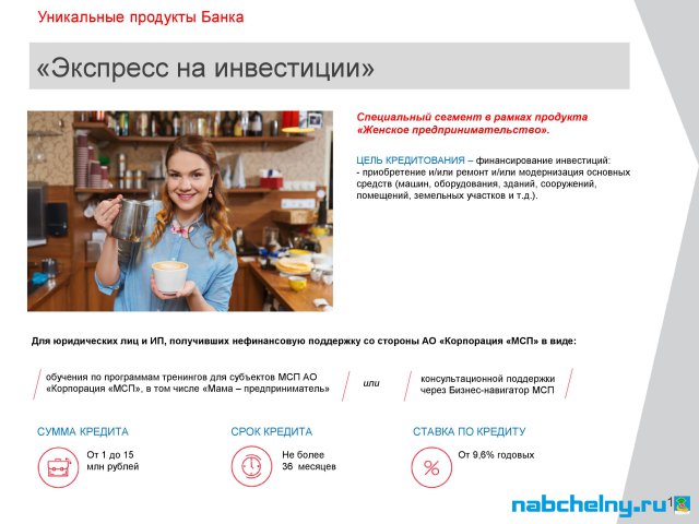 Стоит отметить, что в июле и августе 2018 года в кредитные продукты были внесены изменения, расширены сферы применения программы стимулирования, предоставлена возможность использования кредитных средств на цели рефинансирования кредитов, утвержден новый специальный продукт для начинающих предпринимателей – «Развитие моногородов – микрокредит», и т.д.