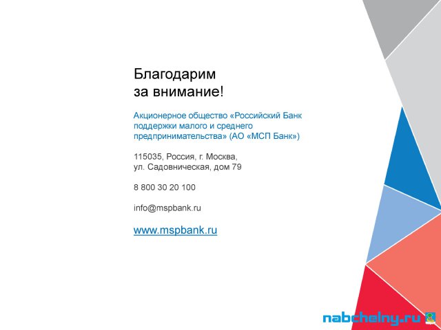 Подробная информация о мерах поддержки предпринимателей размещена на сайтах: АО «Корпорация «МСП» и АО «МСП «Банк».