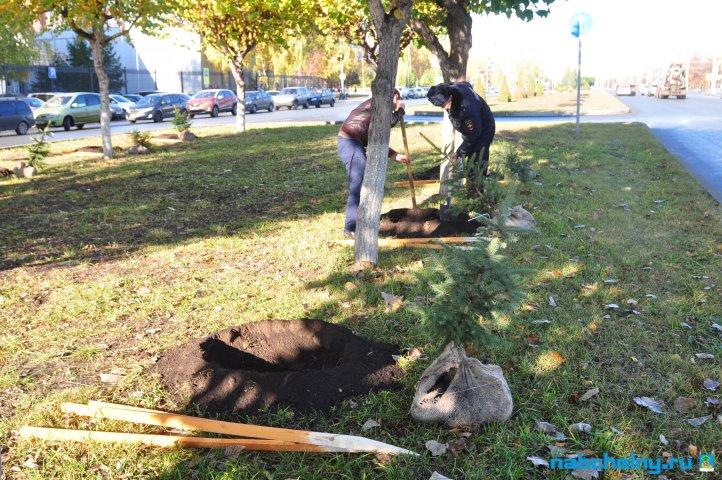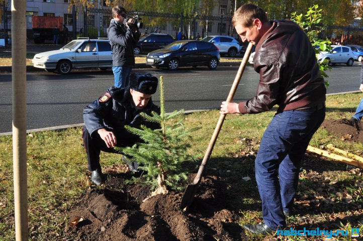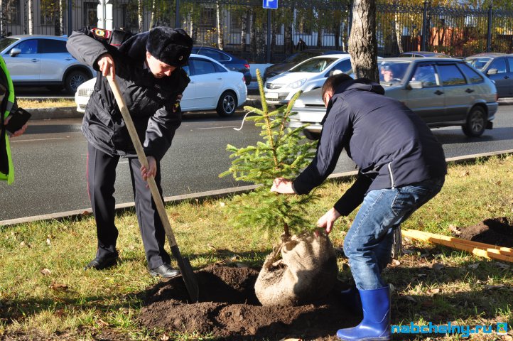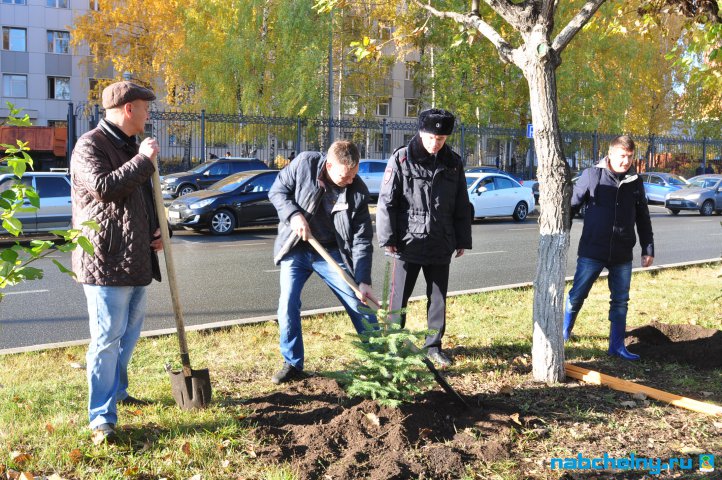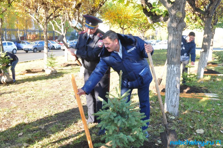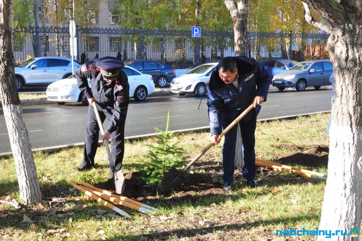 Сегодня в Набережных Челнах состоялся общегородской субботник по благоустройству, озеленению и санитарной очистке территории города. В работе по уборке территорий, а также посадке деревьев приняли участие сотрудники управления внутренних дел автограда. Силами работников правоохранительных органов появилось больше 20 колючих елей на проспекте Беляева, напротив здания УВД. Руководители всех служб управления заложили аллею, посвящённую 300-летию образования российской полиции.