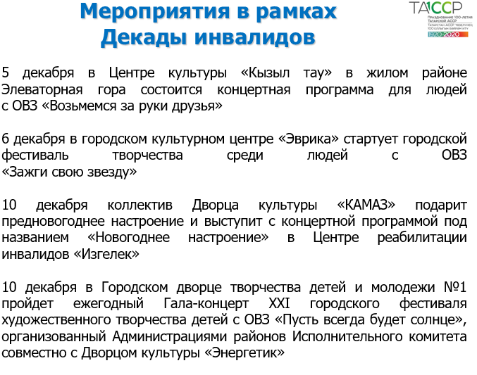 Яр Чаллыда физик мөмкинлекләре чикле кешеләргә багышланган декада бара. Хәзерге вакытта шәһәребездә 32 534 инвалид, шул исәптән балигъ булмаган 2089 инвалид бала яши. Шуларның 55 %ы – хатын-кызлар, 45 %ы – ир-атлар. Башкарма комитет Җитәкчесе Рамил Хәлимов бу хакта бүгенге матбугат конференциясендәге чыгышында хәбәр итте.