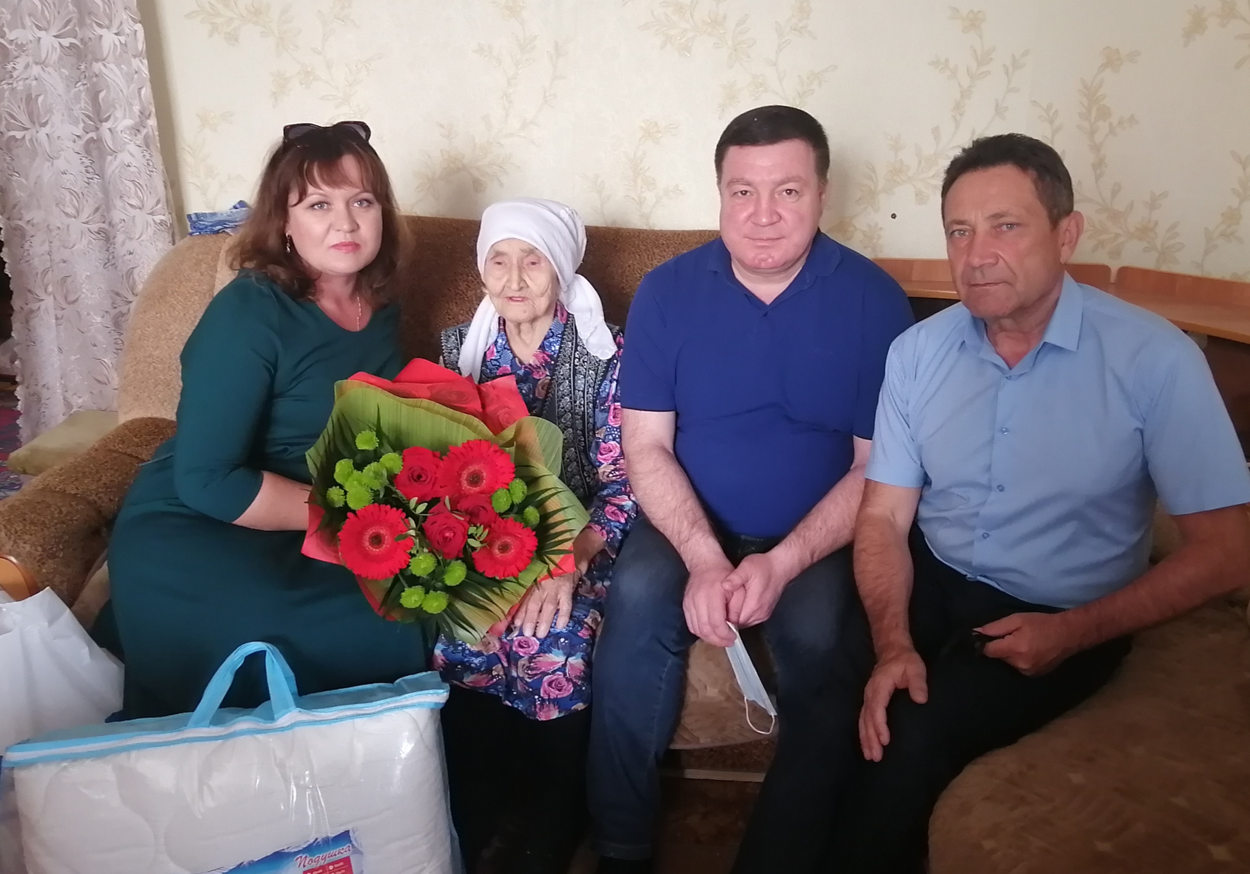 Шарипову Фагиму, Терентьеву Александру Семеновну, Шахматову Василису Григорьевну посетили депутат Государственного Совета Республики Татарстан Марсель Мингалимов, депутат Городского Совета Рубин Бадиков и заместитель главы администрации Комсомольского района Татьяна Скибина. Они вручили ветеранам памятные подарки.