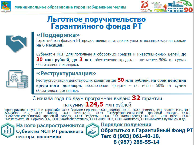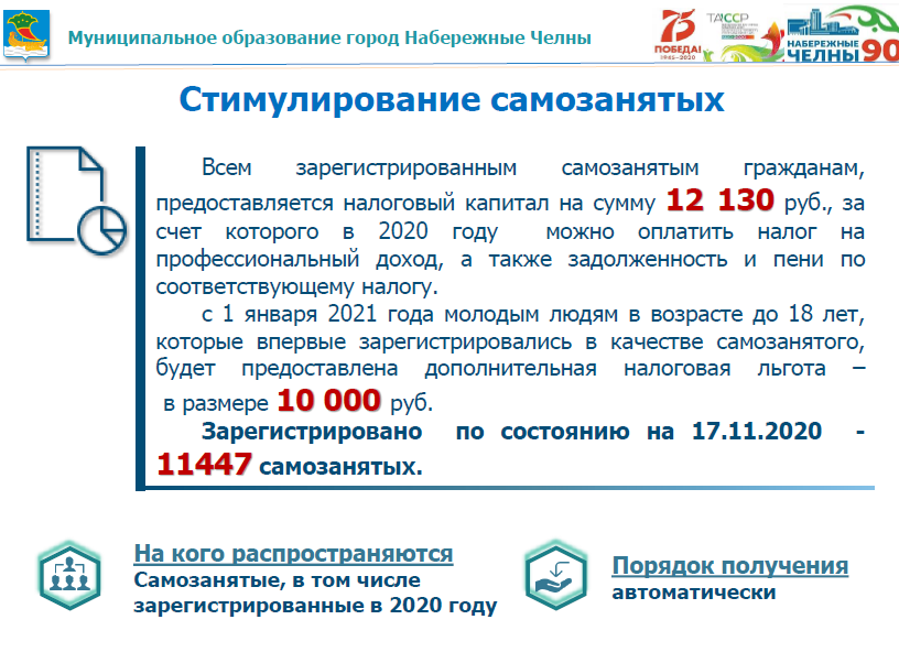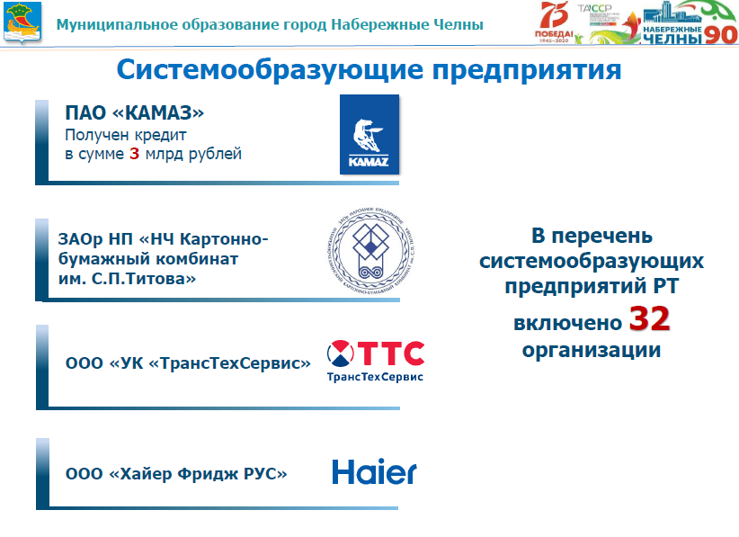 Об антикризисных мерах поддержки в период пандемии рассказала сегодня во время пресс-конференции заместитель руководителя Исполнительного комитета Набережных Челнов Наталия Кропотова. Она отметила, что предпринимательский сектор формирует 35% экономики и бюджета города. «Несмотря на пандемию оборот субъектов малого и среднего предпринимательства вырос на 23,7%. Поддержку, которая была оказана на государственном уровне, мы почувствовали на результатах деятельности предприятий», - сказала она.