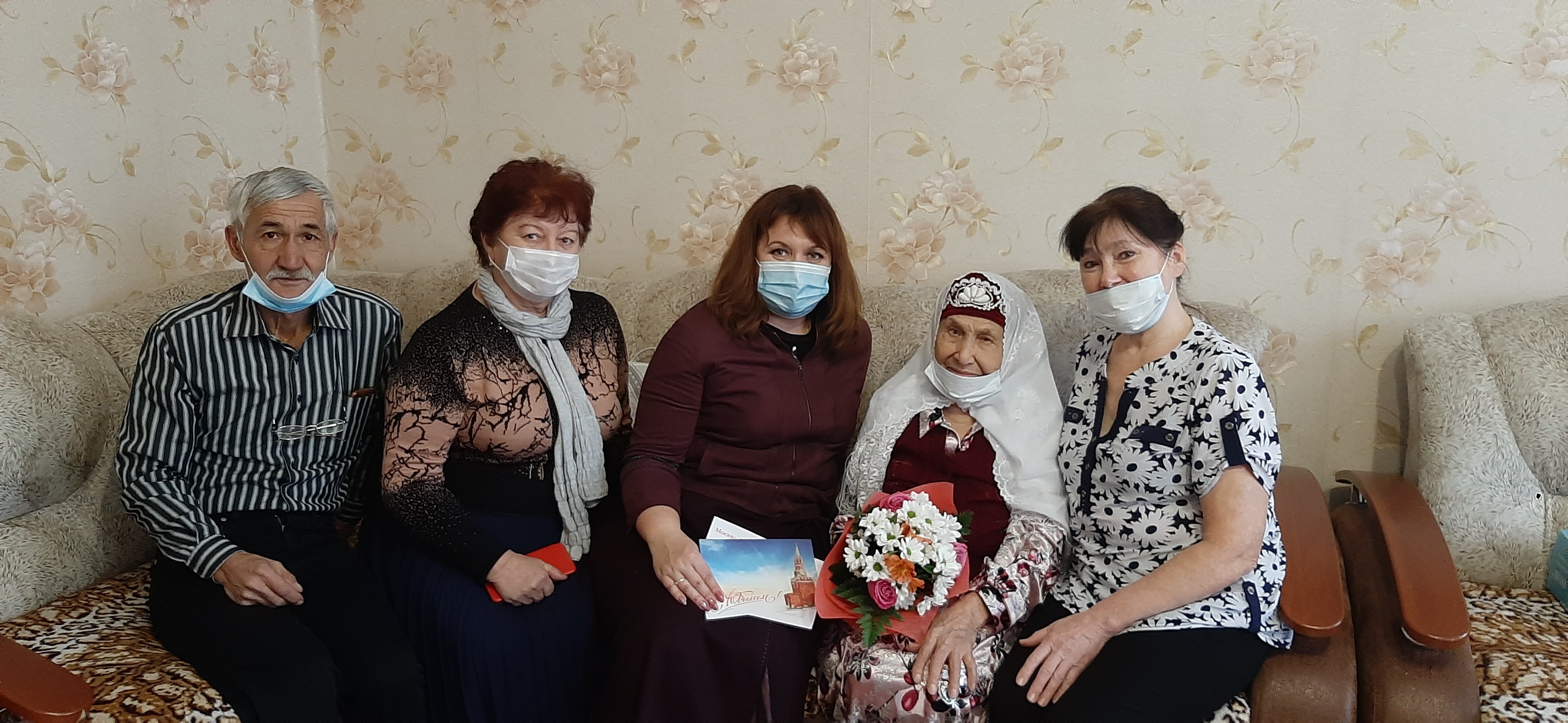 В Комсомольском районе 90-летний юбилей со дня рождения отмечают ветераны Великой Отечественной войны Кафия Исхаковна Сагадиева и Альфия Ахуновна Нигматова. Поздравления и подарки от имени Президента РФ Владимира Путина, мэра города Набережные Челны Наиля Магдеева и от себя лично юбилярам вручили заместитель главы администрации Комсомольского района Татьяна Скибина и председатели ТОС Анвар Тагиров и Альфия Гизатуллина.
