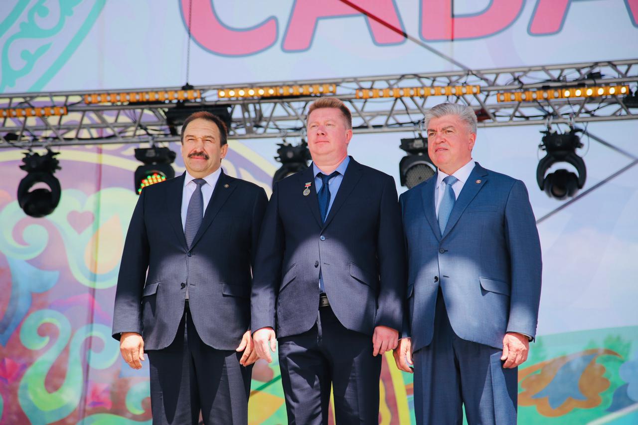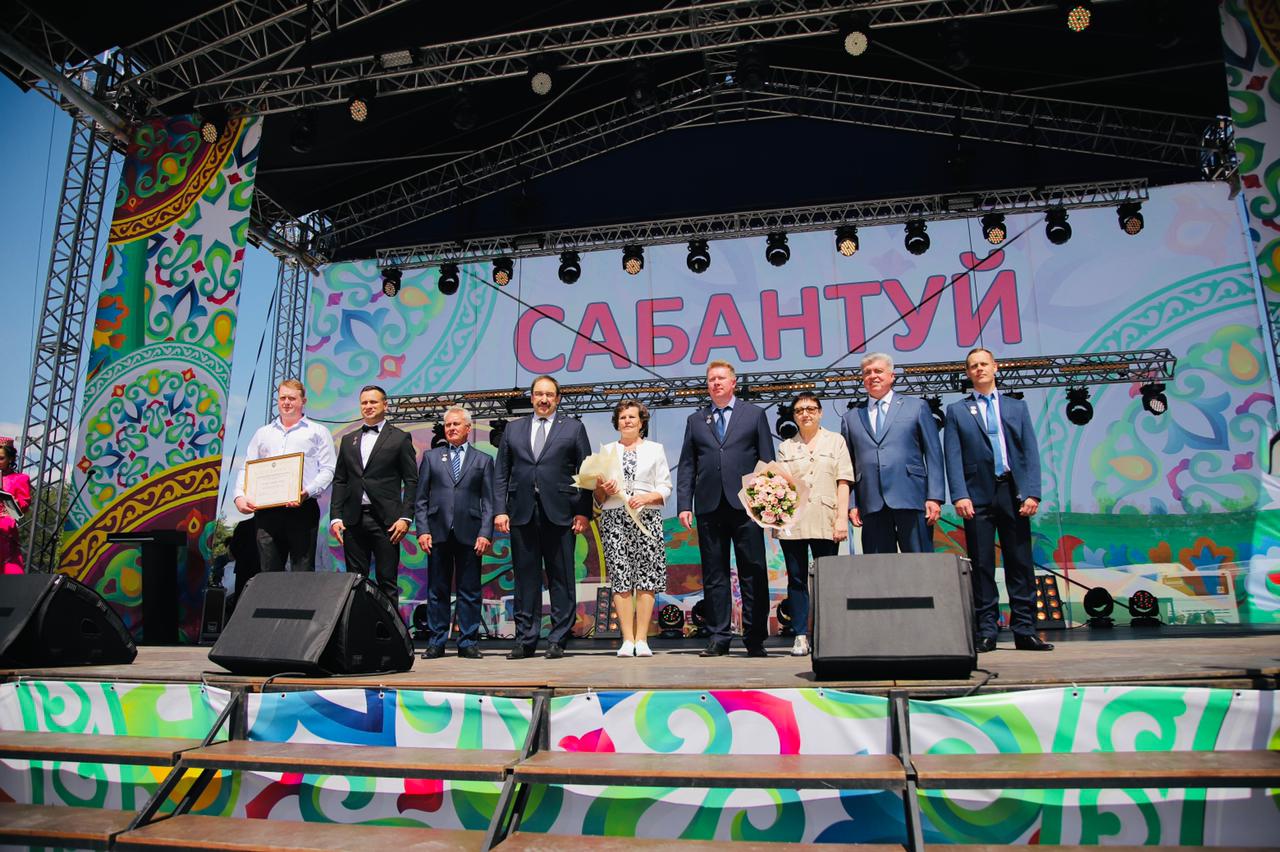Глава правительства Республики Татарстан Алексей Песошин зачитал поздравление от президента Республики Татарстан Рустама Минниханова, в котором говорится: «На протяжении многих веков яркий, гостеприимный майдан Сабантуя собирает трудолюбивых земледельцев и прославленных батыров, всех, кому близки и дороги родной язык, традиции и обычаи предков. Недаром у нас говорят: «Татар барда, Сабан туе бар» («Где татары, там Сабантуй»). Действительно, Сабантуй – это неотъемлемая часть культурного кода татарского народа, живая связующая нить между нашим прошлым, настоящим и будущим. Широкий и щедрый, как сама душа татарского народа, майдан Сабантуя не знает социальных, возрастных, национальных и религиозных границ. Сегодня – в нашем сложном, постоянно меняющемся мире, по-прежнему ничто не может заменить уютного тепла родного очага, красоту исконного напева, здоровый азарт конных и борцовских состязаний».