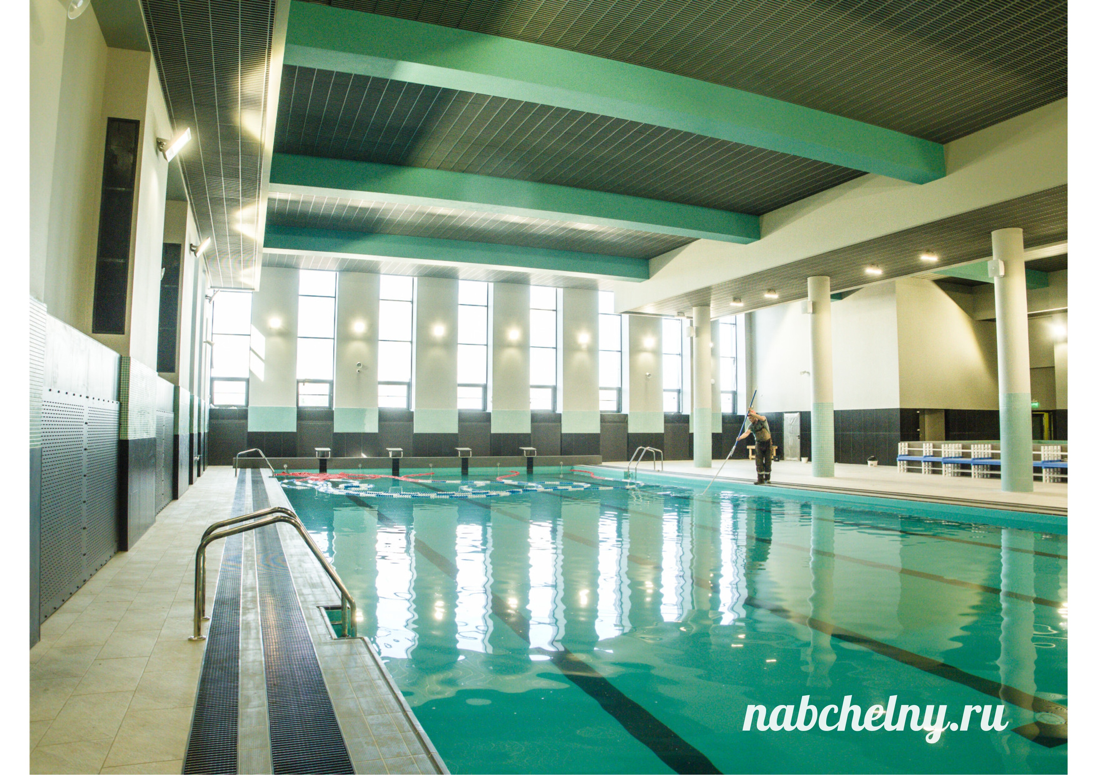 На первом этаже располагается бассейн
