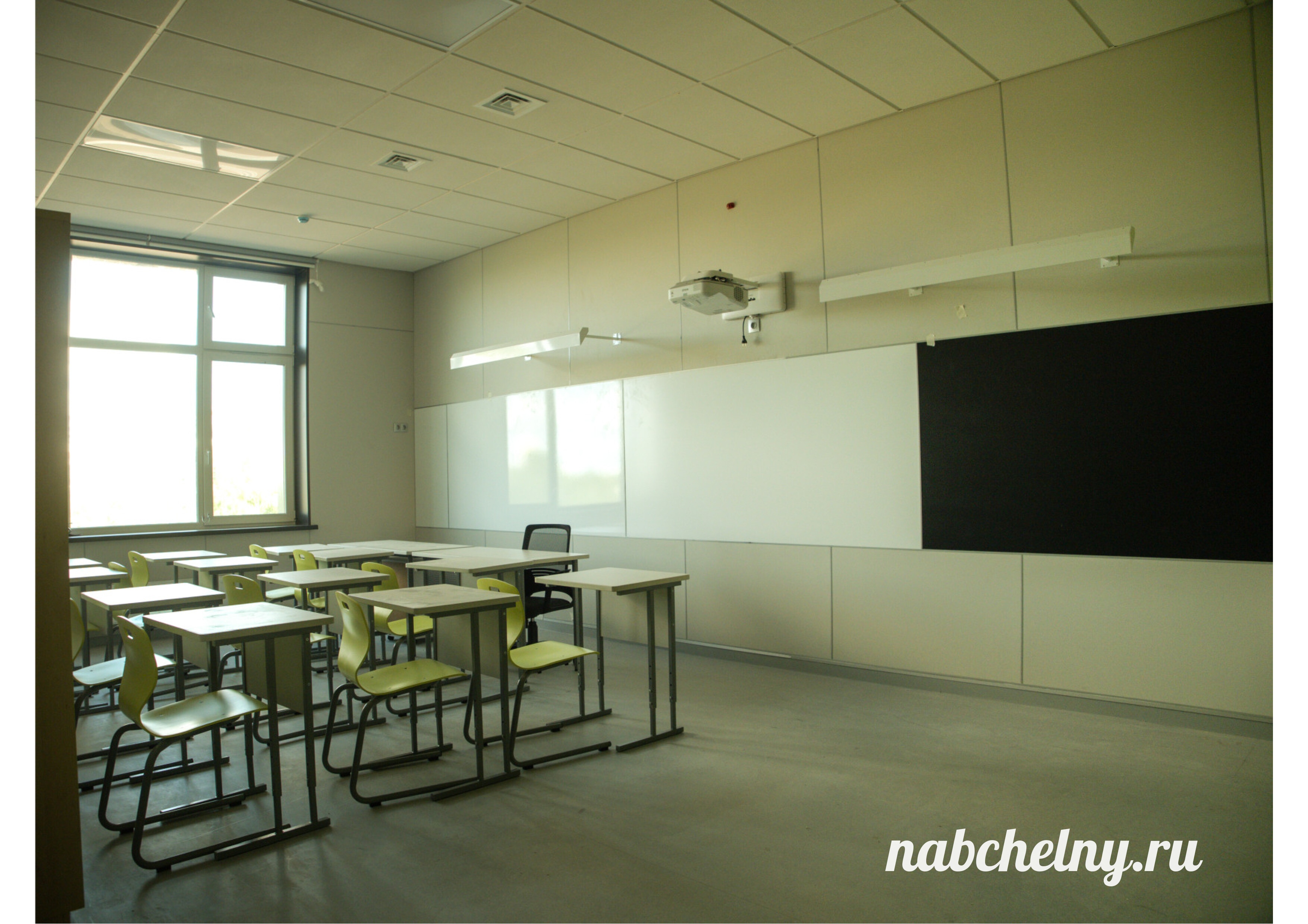 Классы еще не оснащены техникой. Заметим, что во всех учебных кабинетах размещены сразу три доски - классическая (для мела), магнитно-маркерная и доска для проектора.
