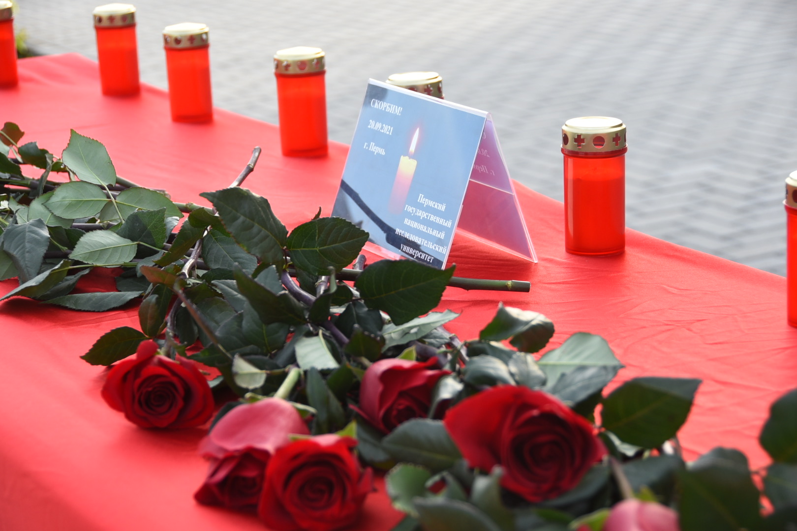 Биредә «Скорбим. 20.09.2021г. Пермь» диеп язылган.