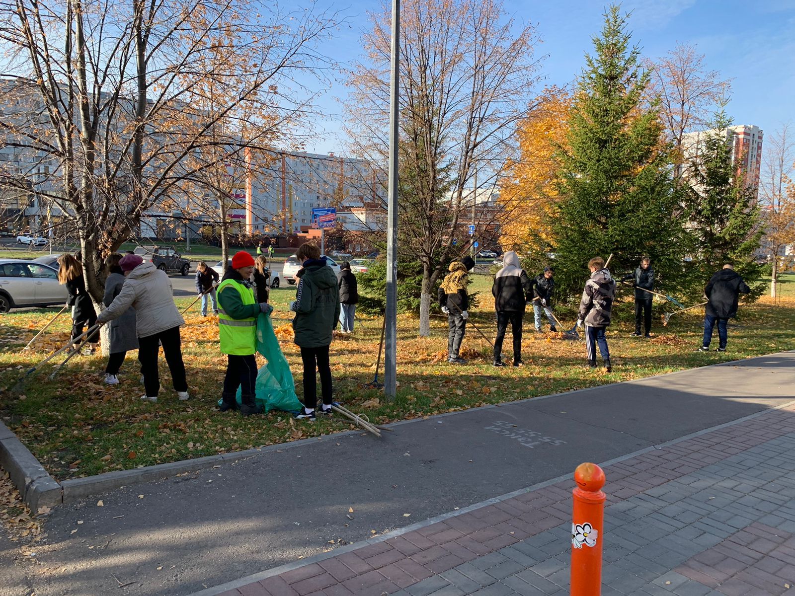 Коллектив администрации Центрального района участвовали в очистке газонов от листвы территории вдоль пр. Х. Туфана со стороны 43 комплекса. По пр. Мира с участием студентов технического колледжа им. Поташова и сотрудников администрации Автозаводского района произведен сбор листвы. Собрано девять куб. м. растительных отходов с 0,6 га территории.