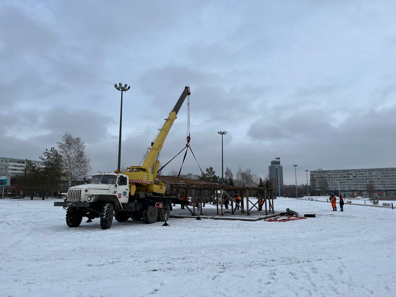Мэрия каршындагы мәйданда әзерлек эшләре дүшәмбедән бирле башкарыла башлады инде - постамент урнаштырылган, территория әзерләнгән һәм чистартылган. «ПАД» МУП хезмәткәрләре Яңа ел чыршысын җыюга бүген үк керешкәннәр: башта ике конструкциядән торган нигезне беркеткәннәр, ә соңыннан чыршыны җыя башладылар. Тимер конструкциянең озынлыгы 30 метрга җитә, шуңа күрә аны урнаштыру өчен махсус техника – кран-манипулятор һәм гидроподъемник җәлеп ителә.