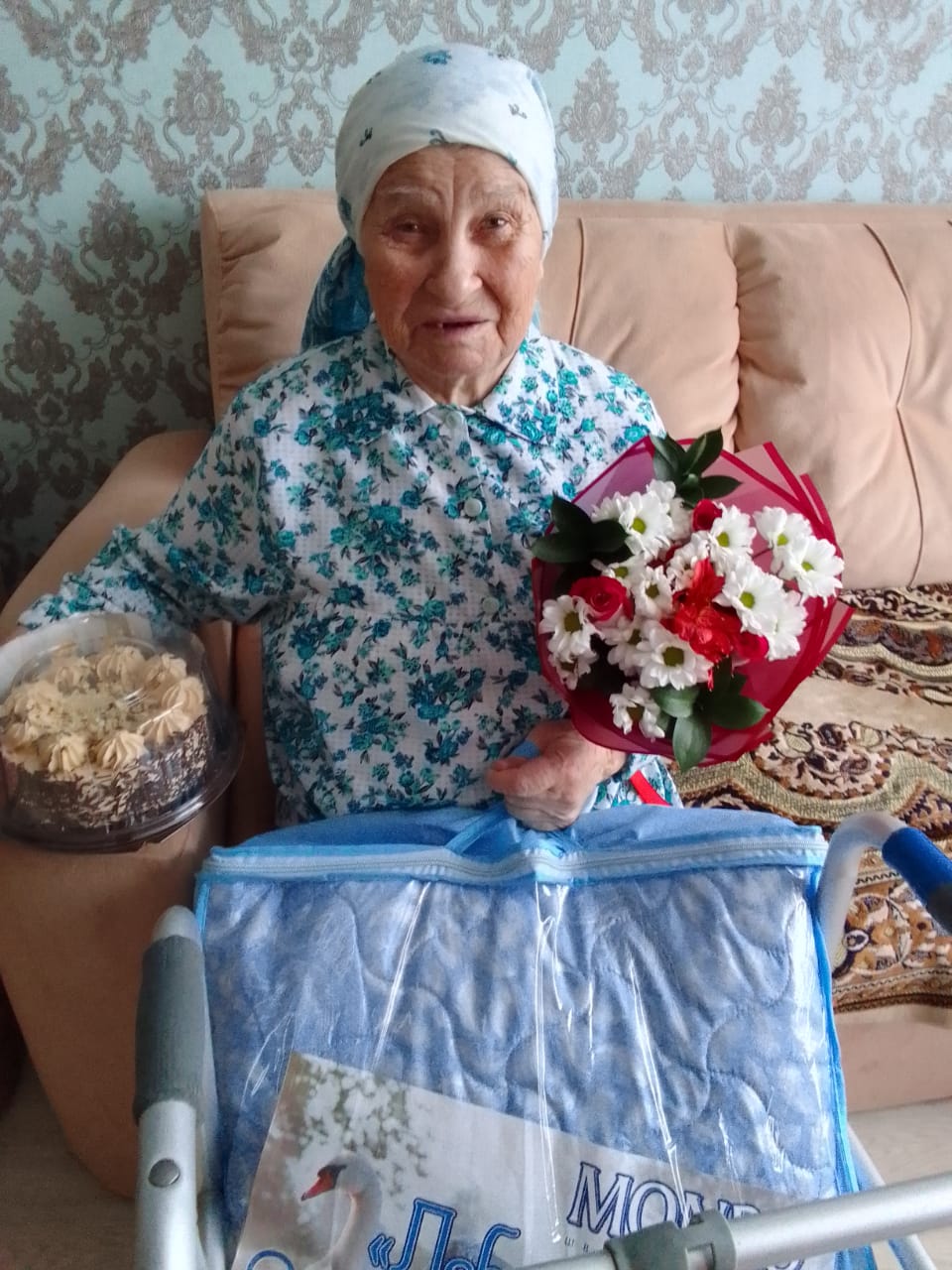 Юбиляр получила поздравления от имени Президента РФ Владимира Путина, мэра города Наиля Магдеева, администрации Центрального района. К поздравлениям присоединилась председатель ТОС Светлана Гурлева.