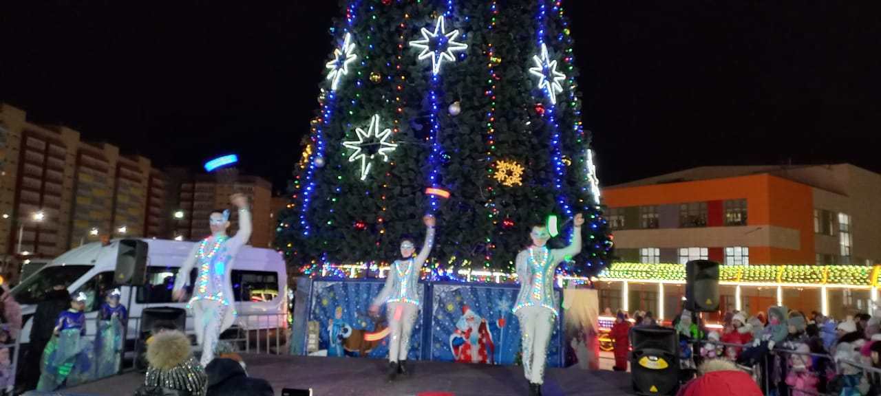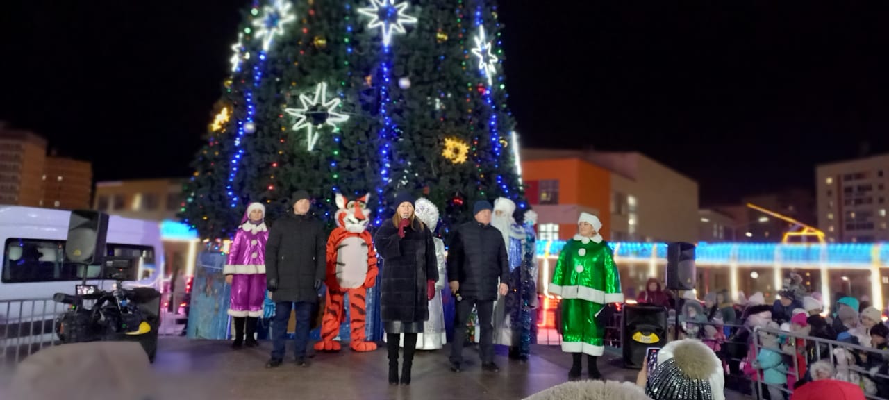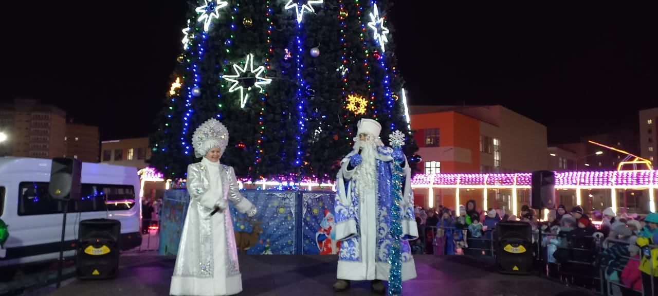 В Замелекесье открыли елку. Праздничная программа с представлениями, весёлыми конкурсами и забавами собрала множество жителей микрорайона.