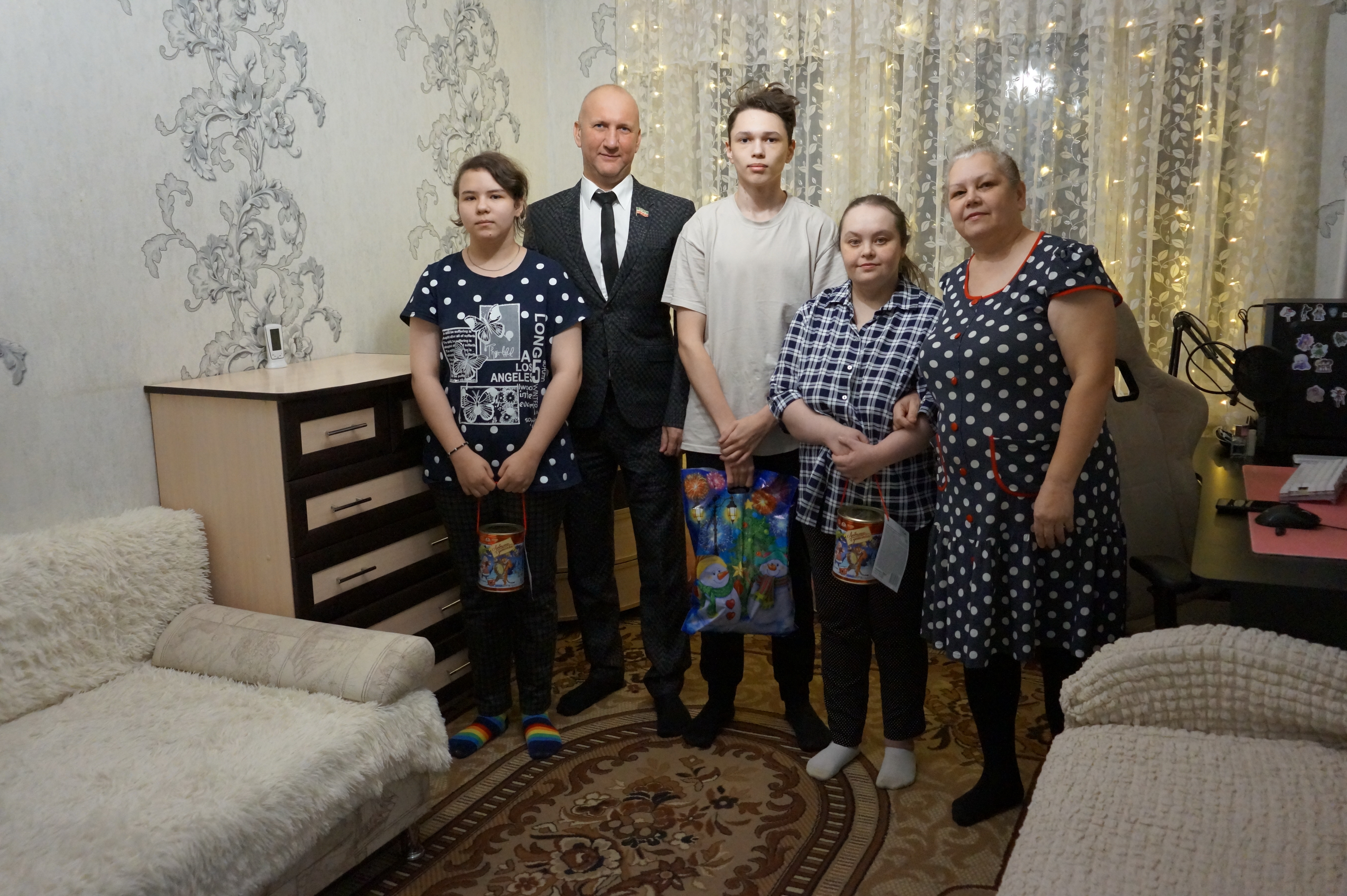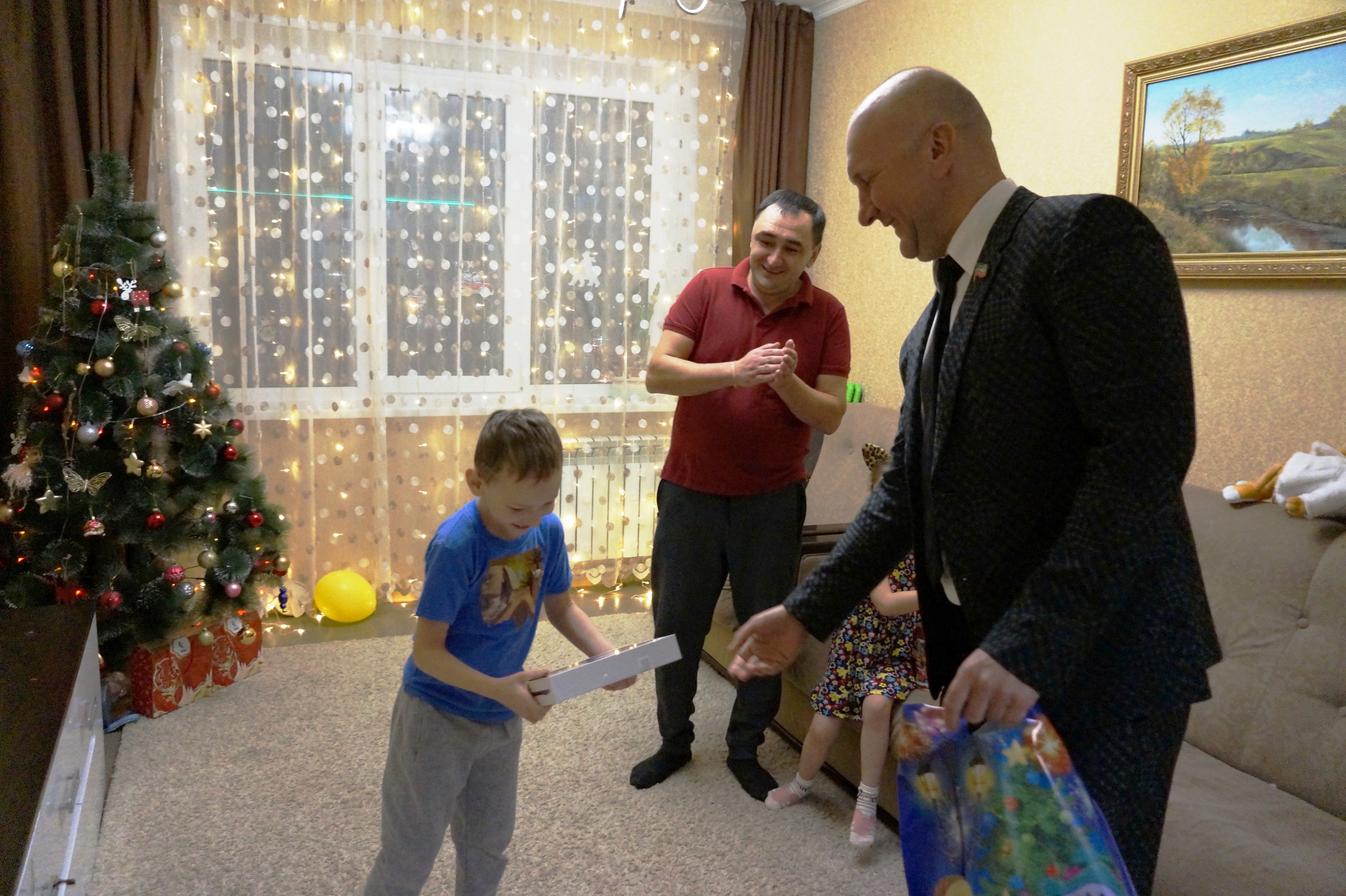 Заместитель главы муниципального образования Ирина Сагидуллина, депутат Государственного Совета РТ Николай Атласов и глава Центрального района Искандер Галимов посетили многодетную семью, для того, чтобы поздравить с наступающим Новым годом.