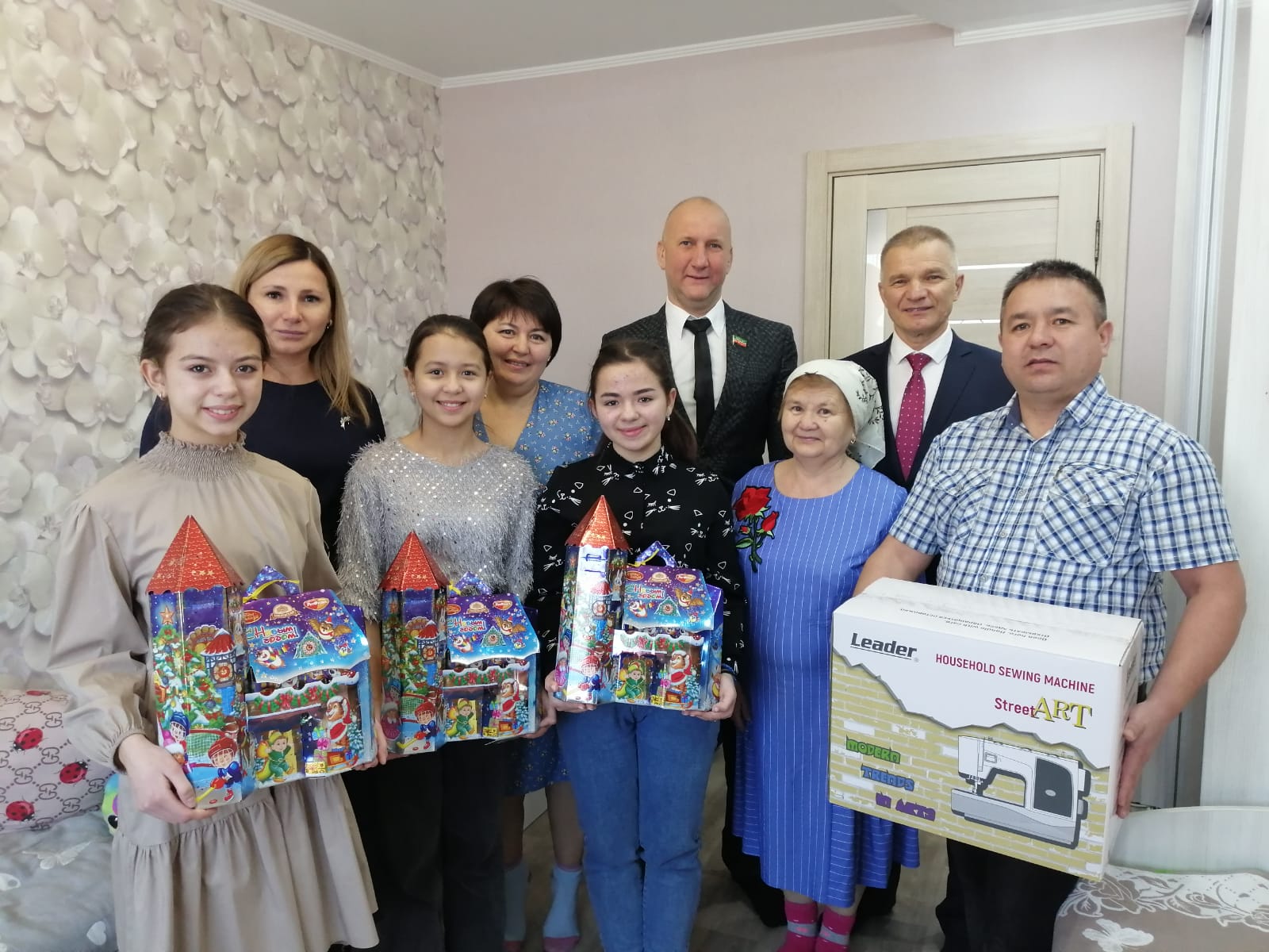 В семье Хайруллиных воспитываются три девочки с ограниченными возможностями здоровья. Эвелина, Эмилия и Ильяна обрадовались подаркам, с которыми к ним пришли гости: сладостям и швейной машине, о которой дети давно мечтали.