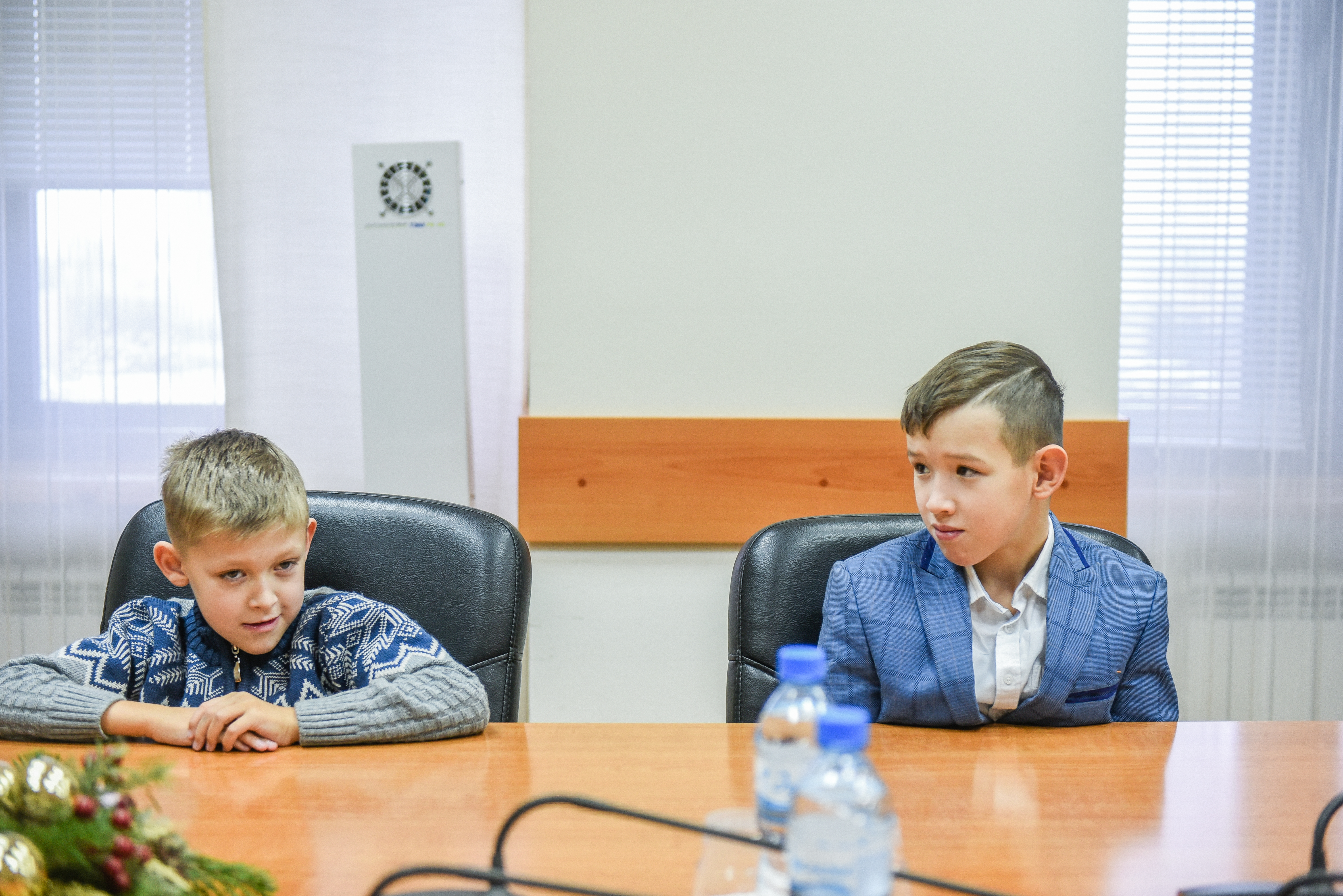Мэр города Наиль Магдеев встретился с юными челнинцами, чтобы поздравить их с наступающим Новым годом и вручить подарки. В зале находились четверо детей - это Камиль Петров, Алмаз Латипов, Василя Ханифуллина, Арина Мансурова.