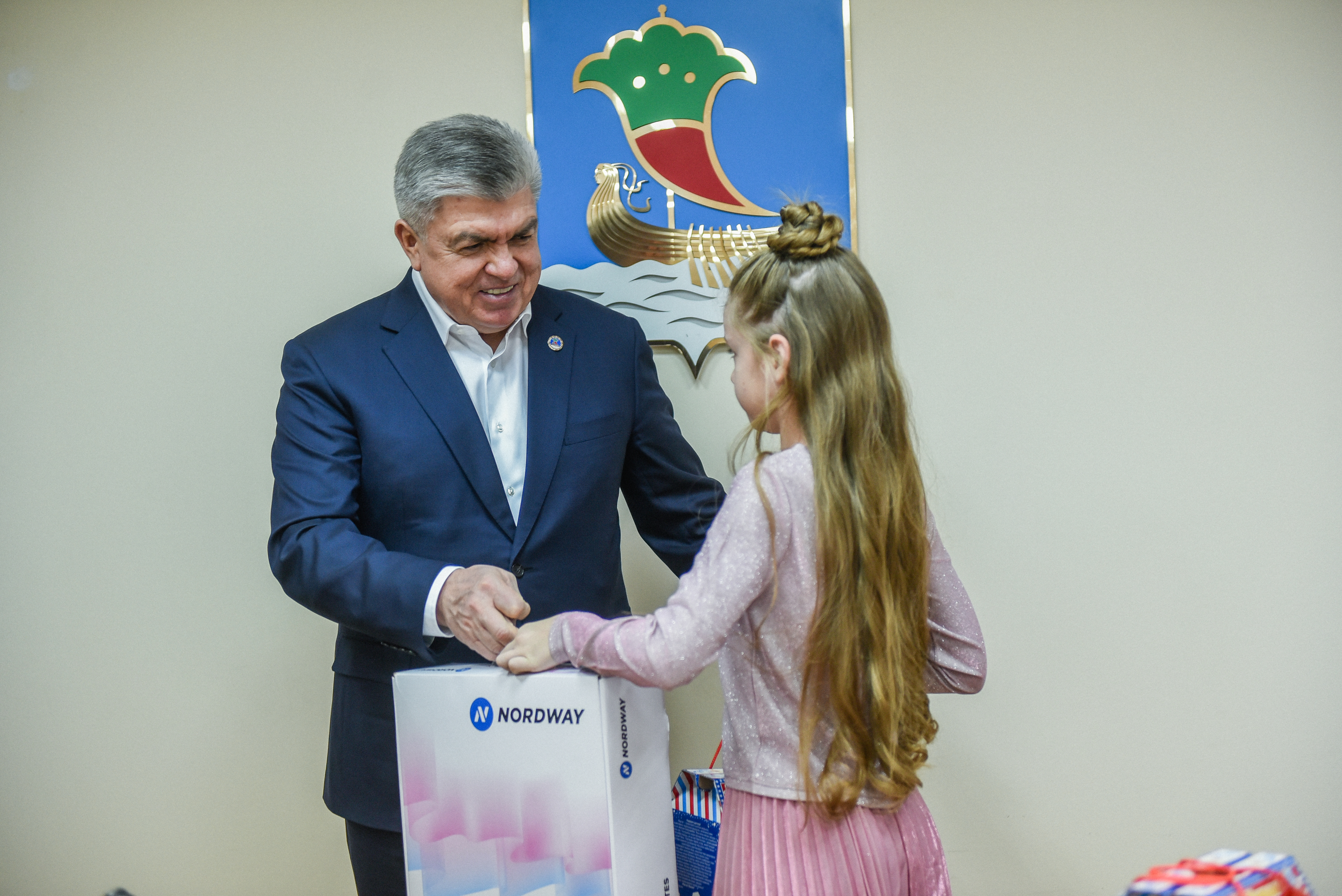 «Новый год – особенный праздник, семейный, добрый, –  обратился к ребятам Наиль Магдеев. – Вы все отправляли пожелания Деду Морозу и нам, взрослым, хотелось бы стать ненадолго волшебниками и сотворить чудо. Сегодня в преддверии Нового года происходит такое волшебство – исполняются мечты. У вас всех хорошие успехи в школе, искусстве. Вы – молодцы!»