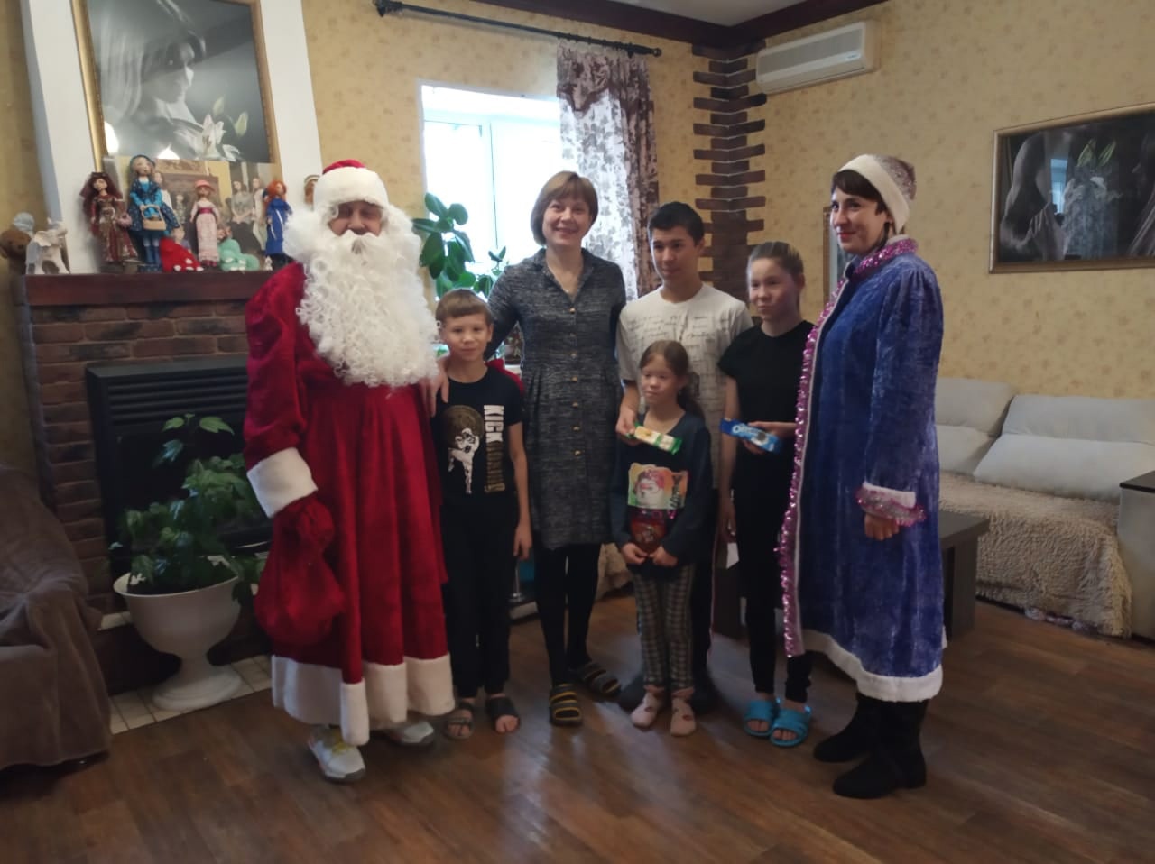Кыш бабай белән Кар кызы гаиләләрдә кунакта булдылар. Балалар шигырьләр сөйләделәр, әкият персонажлары белән фотога төштеләр. Өстәл уеннары һәм татлы ризыклар рәвешендә Яңа ел бүләкләре алдылар.