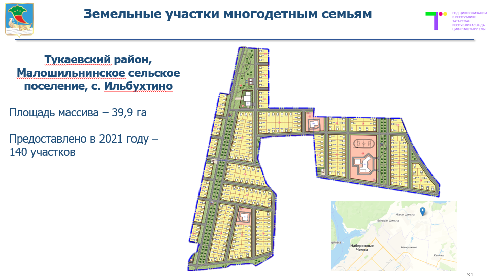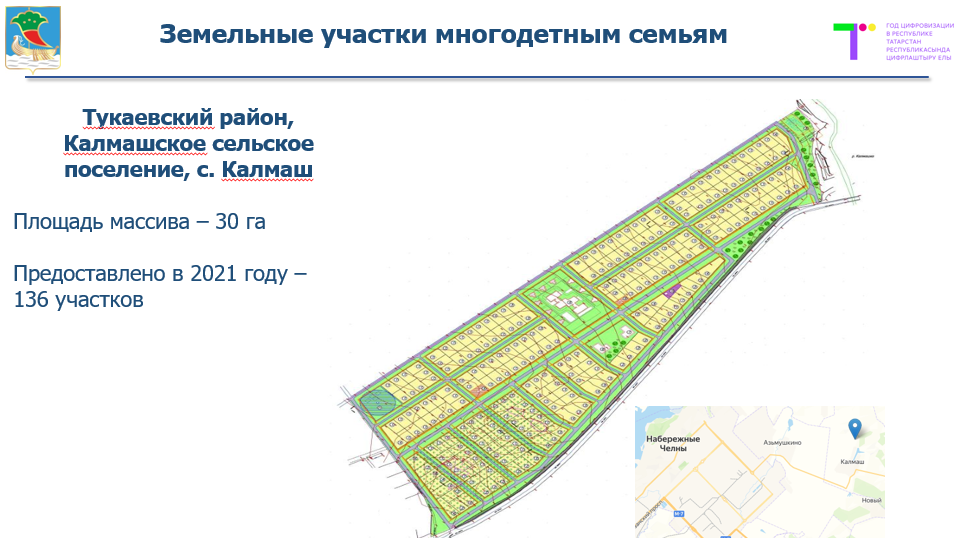 Во исполнение Закона Республики Татарстан о бесплатном предоставлении земельных участков для индивидуального жилищного строительства продолжается работа по предоставлению земельных участков многодетным семьям города.
