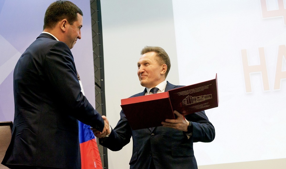 Награду руководителю Исполнительного комитета Набережных Челнов Фариду Салахову вручил руководитель Госалкогольинспекции республики Татарстан Жаудат Ахметханов.