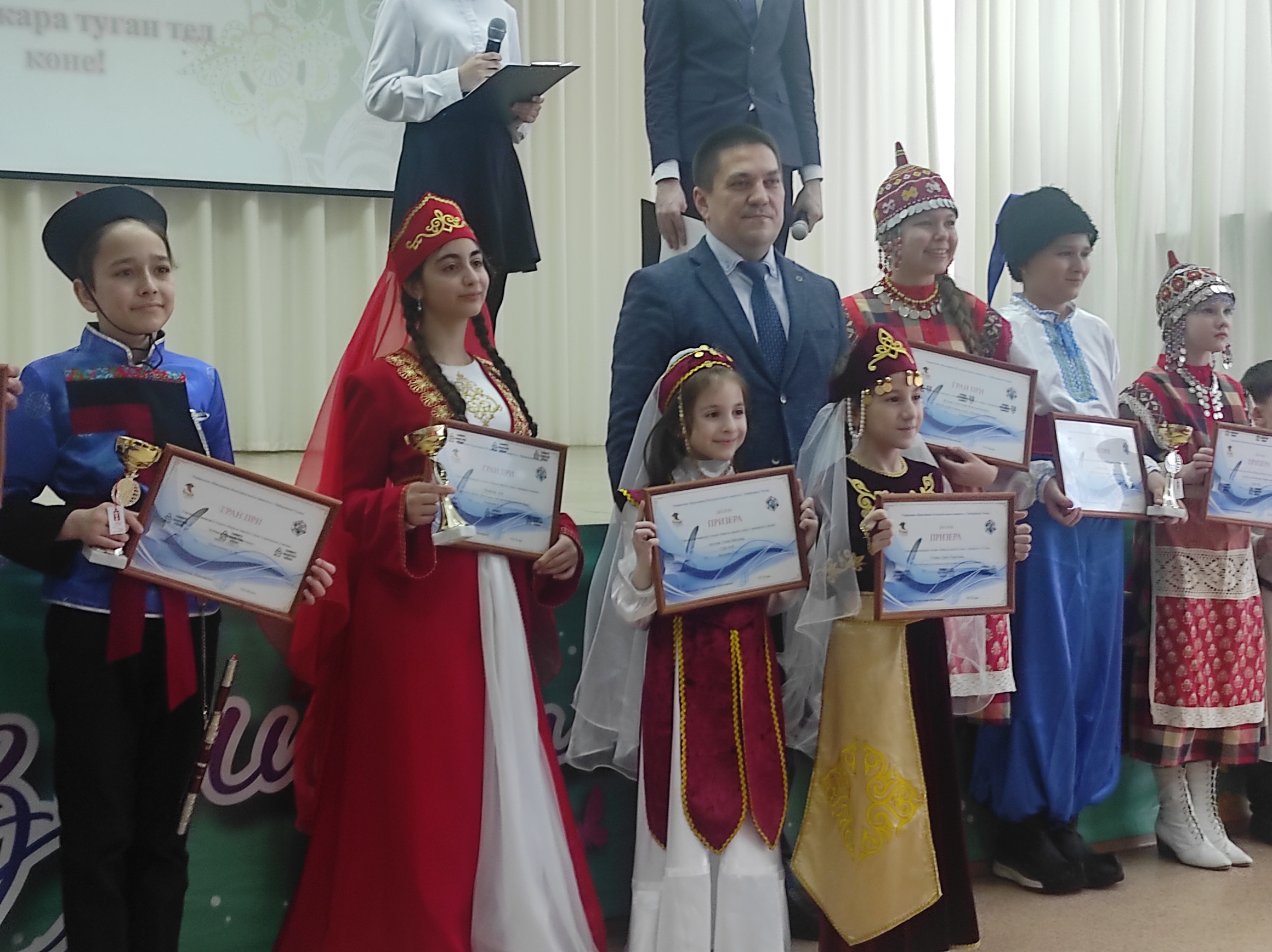 На многих языках народов была преподнесена красота и величие родной речи, сплотив всех присутствующих под одним девизом «Вместе дружная семья». Победители конкурсов, активные участники награждены дипломами и памятными подарками.