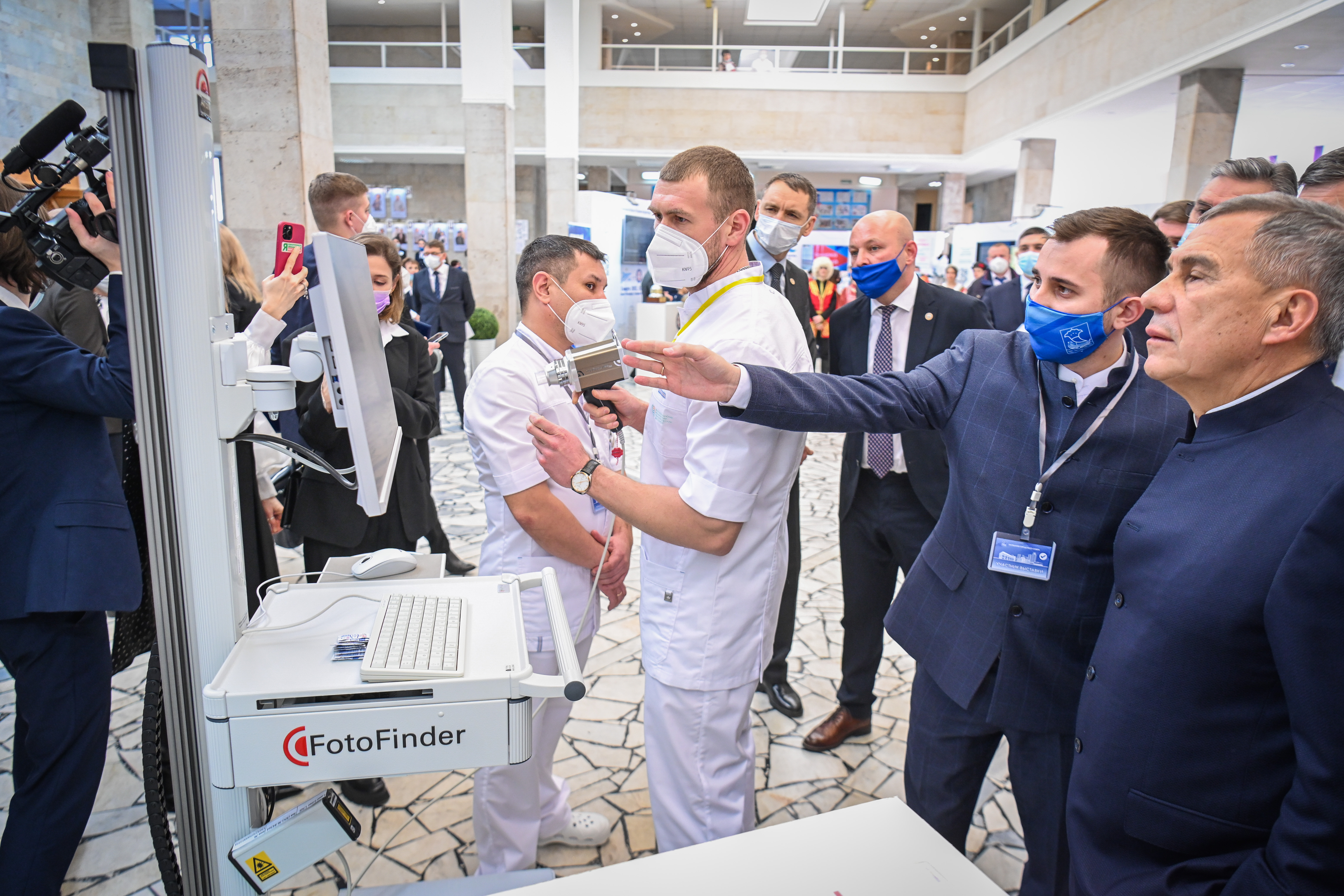Тире яман шешен ачыклауда ясалма интеллект кулланылуы турында Яр Чаллы онкология диспансеры баш табибы Алмаз Хаҗиев сөйләде. FotoFinder диагностика комплексы диагнозны максималь дөрес кую өчен барлык кирәкле инструментларга да ия: видеодерматоскоп теләсә кайсы яман шешне 140 тапкыр зурайтып карарга мөмкинлек бирә, әйтергә кирәк, дерматоскопларның күпчелеге 10-40 тапкыр гына зурайтып күрсәтү мөмкинлегенә ия.
