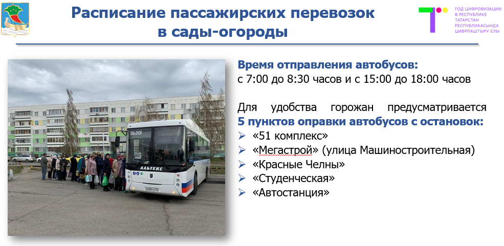 Яр Чаллыда ел саен шәһәр җәмәгать транспортының гомуми линияләреннән ерак торган бакчачылык ширкәтләренә сезонлы пассажирлар йөртү оештырыла. Май аеннан сентябрьгә кадәр 83 бакчачылык ширкәтенә 39 маршрут буенча хәрәкәт оештырылачак. 2021 елда 473 мең пассажирга хезмәт күрсәтелгән, шуларның 305 меңе ташламалы категория гражданнар. Бу хакта мэриядә узган иртәнге киңәшмәдә Башкарма комитет җитәкчесенең беренче урынбасары Илья Зуев хәбәр итте.