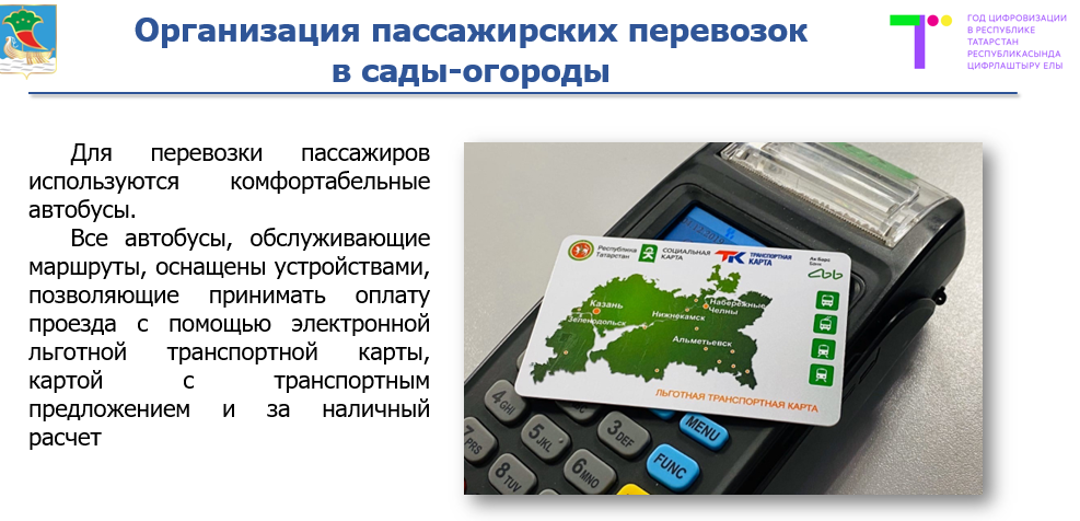 2019 елдан башлап бакчачылык ширкәтләренә йөрү электрон социаль йөртү билетлары – ташламалы транспорт карталары буенча гамәлгә ашырыла.