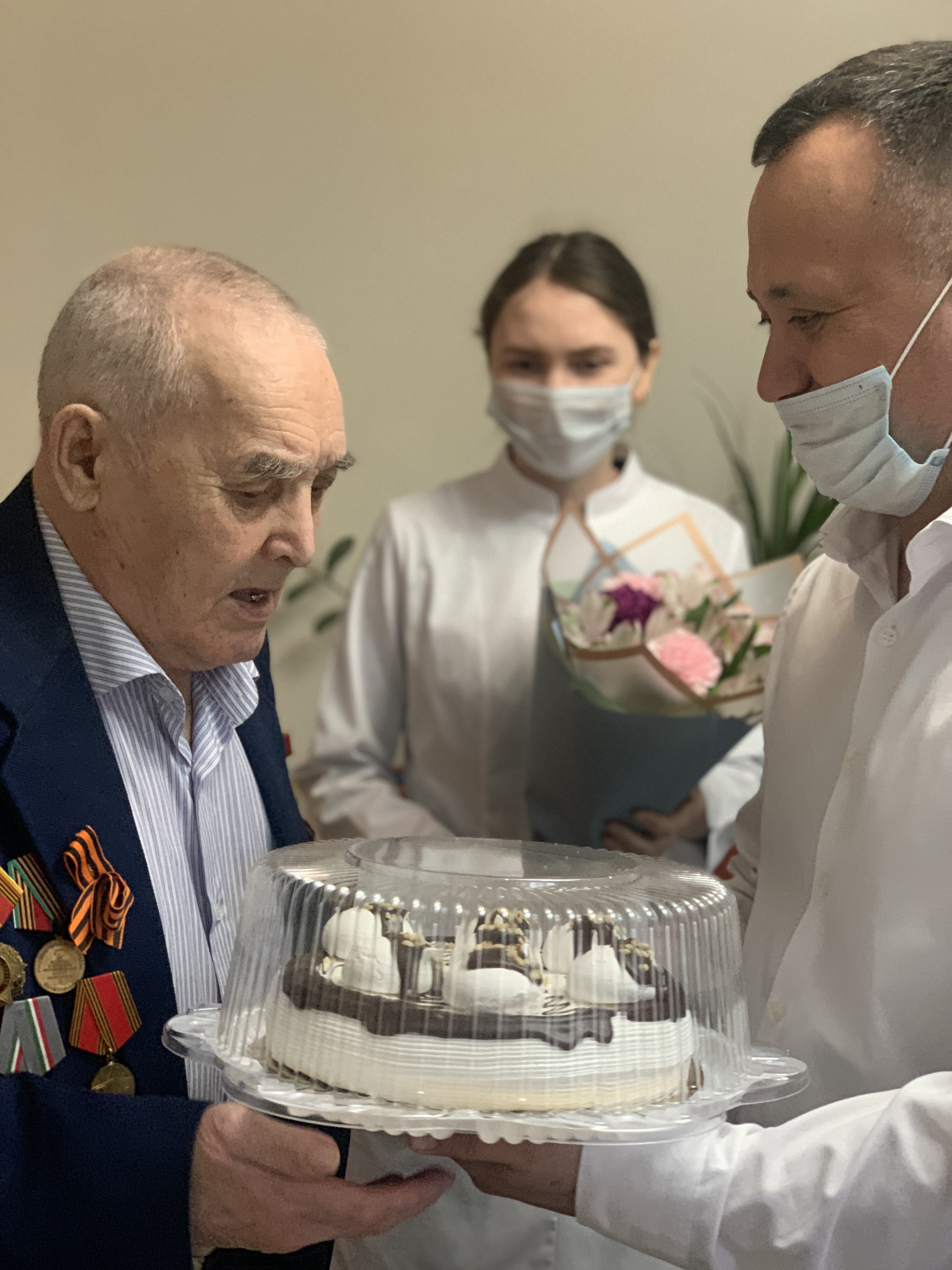 В преддверии 77-летия Великой Победы врачи городской поликлиники №7 навестили участника Великой Отечественной войны Тагира Юсупмурзиновича Мурзина. Медики провели осмотр и поздравили ветерана  с наступающим праздником.