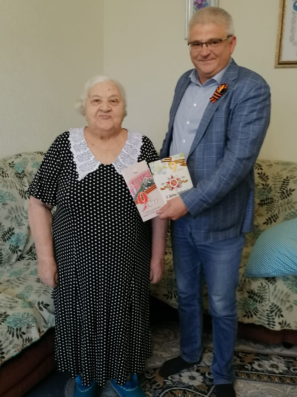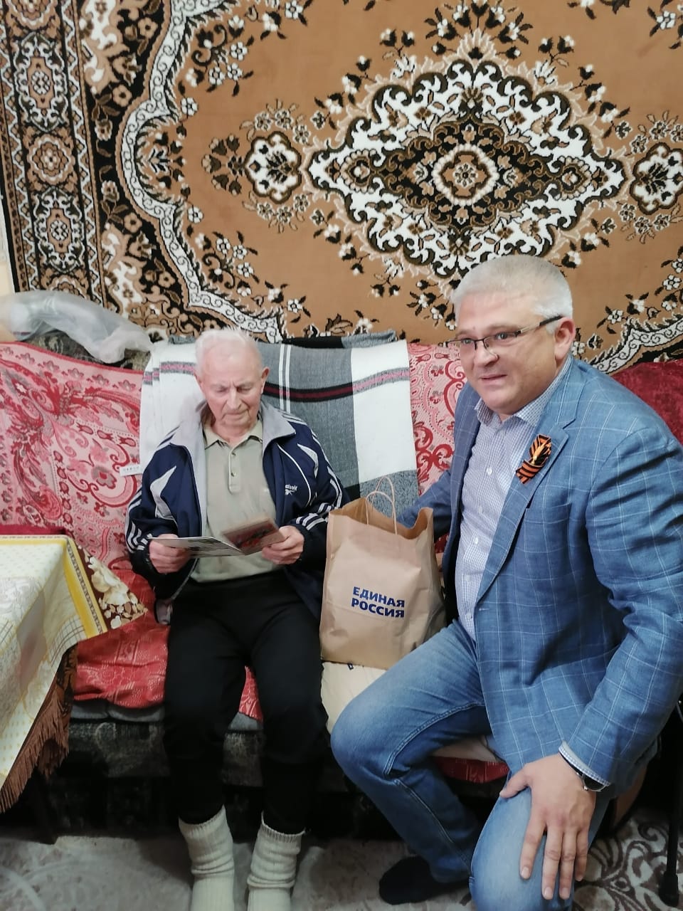 Тыл хезмәтчәннәре Александра Александровна Репина, Николай Михайлович Алымов, Хәлимә Мәхмүт кызы Билданова, Фаина Ивановна Градобоева Татарстан Республикасы Президенты Рөстәм Миңнеханов һәм шәһәр мэры Наил Мәһдиев исеменнән котлау открыткалары һәм азык-төлек җыелмалары алдылар. Депутат ветераннарга ныклы сәламәтлек, иминлек һәм бәйрәм кәефе теләде.