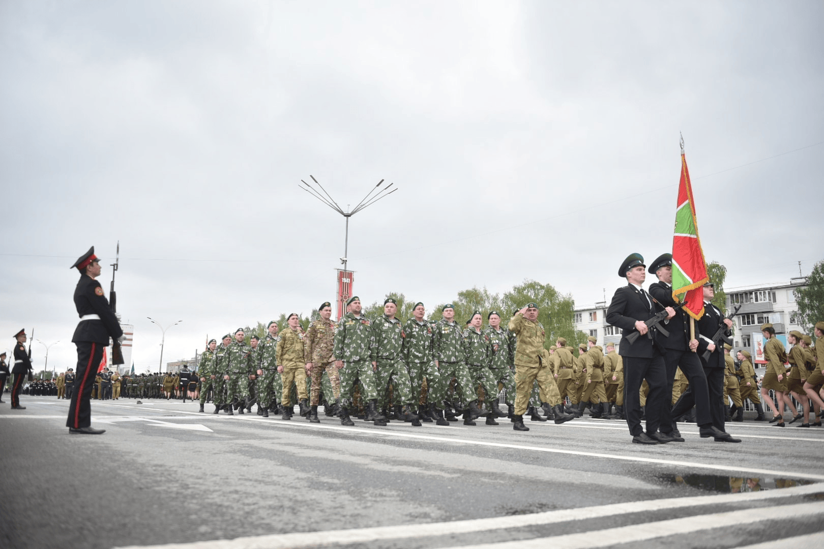 Парадным расчетом проходят активисты региональной общественной организации пограничников запаса, воины-интернационалисты, прошедшие войну в Афганистане, Северном Кавказе и участники СВО.