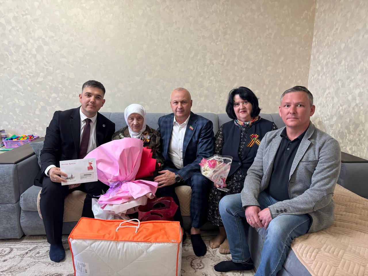 95-летнюю труженицу тыла Муфаккиру Гараеву поздравили с 95-летним юбилеем. Ей передали поздравления от имени Президента Российской Федерации Владимира Путина и мэра города Наиля Магдеева и подарки.