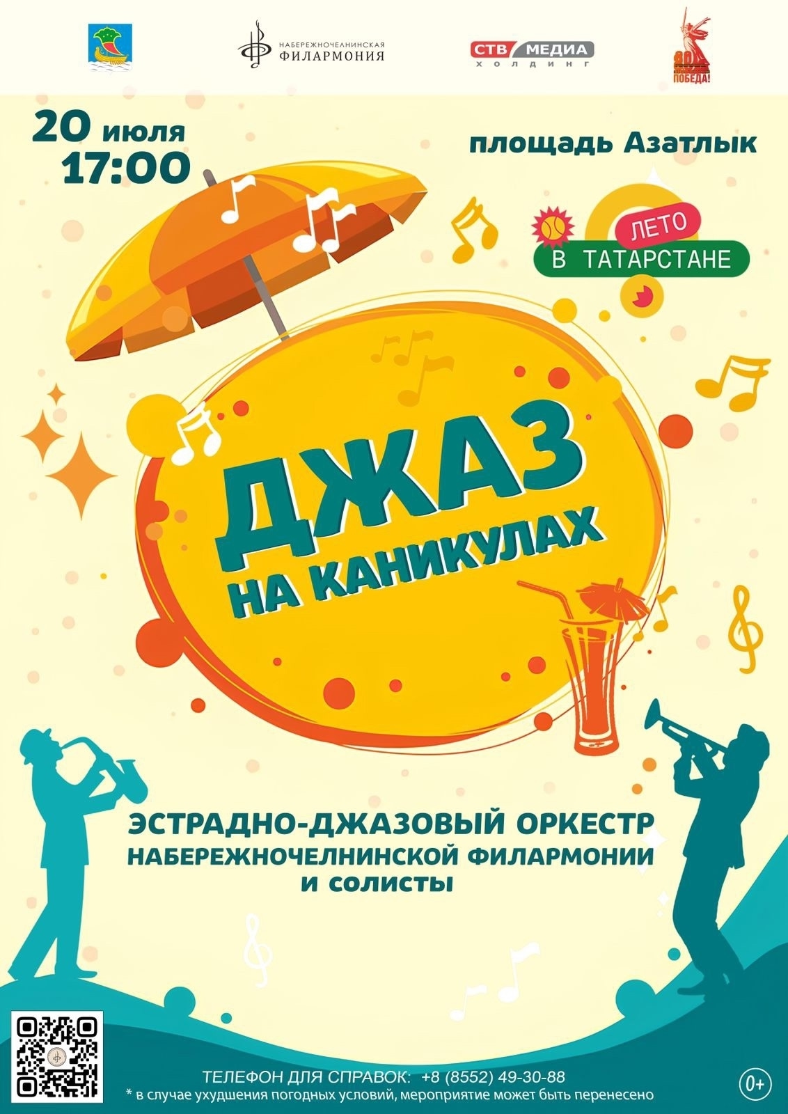 Яркое Лето в Татарстане! 20 июля в 17:00 на площади Азатлык состоится концерт «Джаз на каникулах».