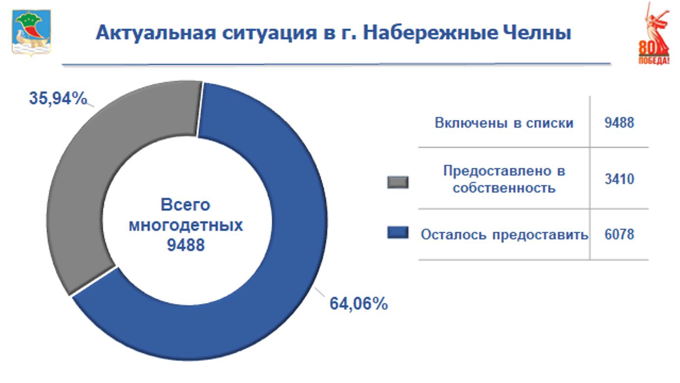 Так, по состоянию на 18.08.2025 принято решений о включении 9 488 семьи в число заявителей, предоставлено в общую долевую собственность – 3 410 земельных участков. Осталось предоставить земельных участков 6 078 семьям.