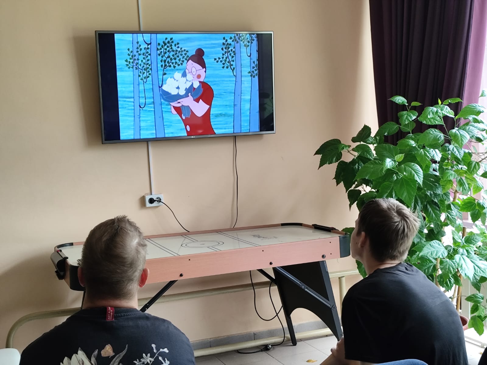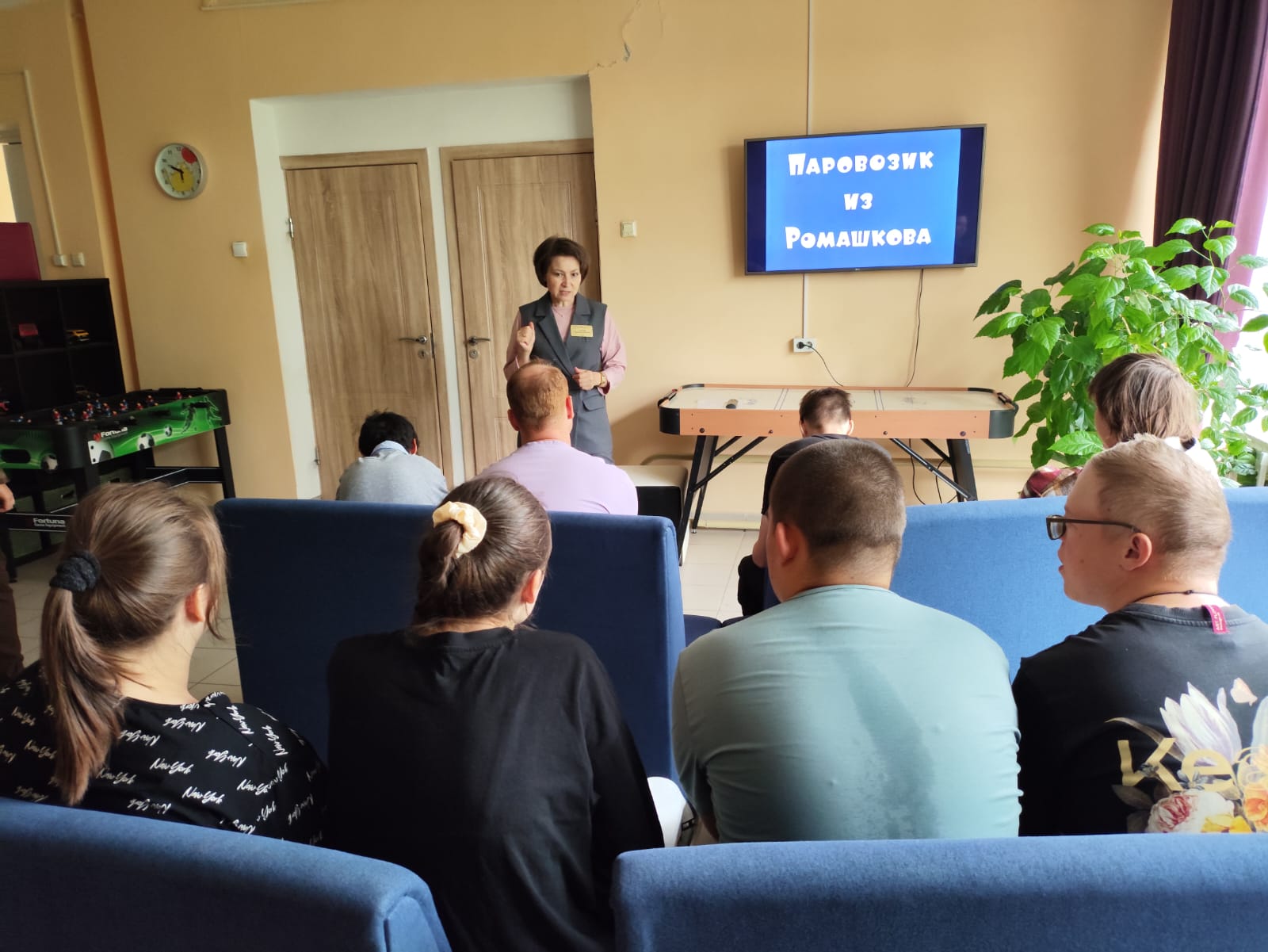 Подопечные отделения дневного пребывания вместе с психологом Надеждой Горячевой посмотрели и обсудили мультипликационный фильм «Паровозик из Ромашково».