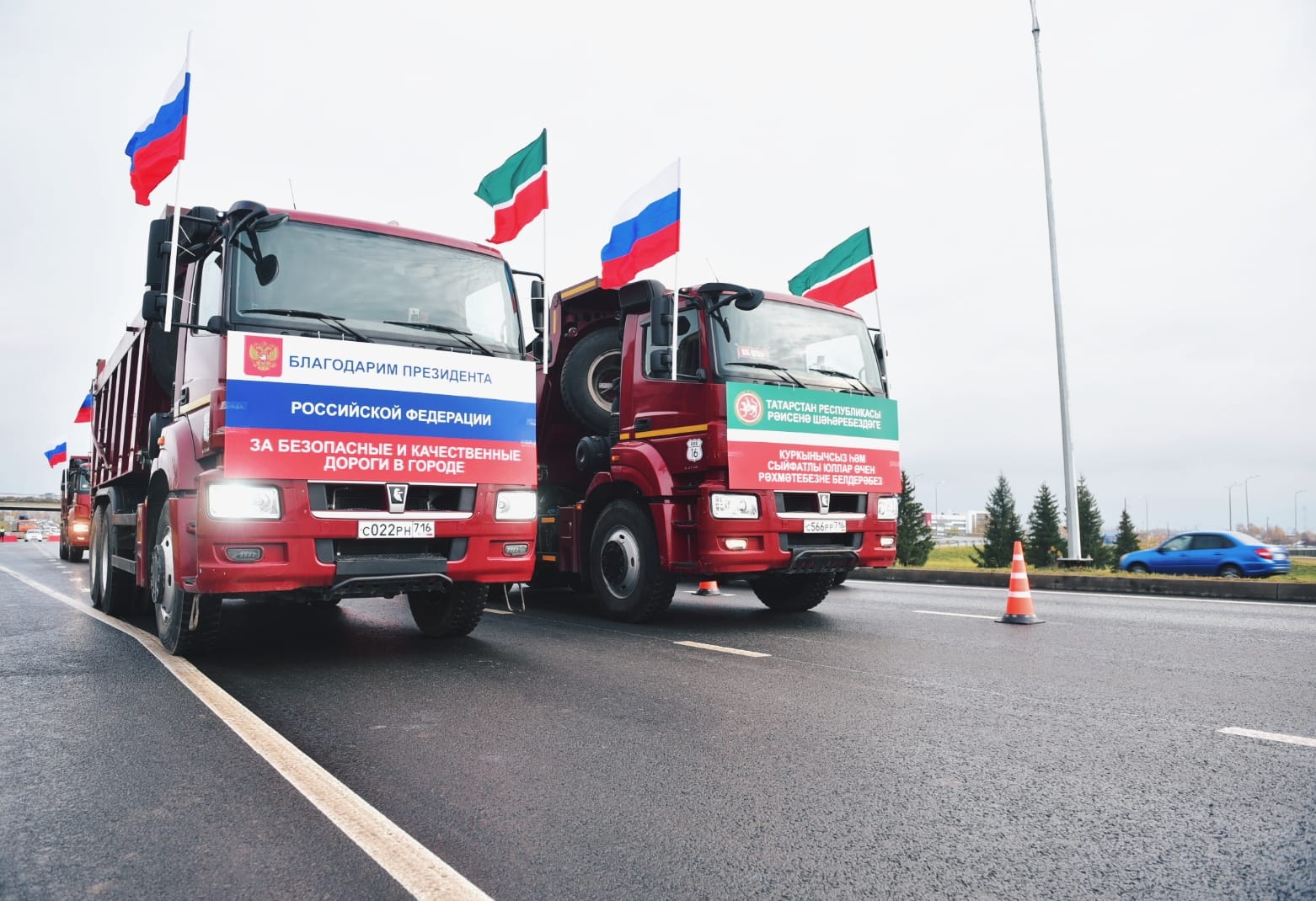 Символический старт началу движения по отремонтированной дороге дали мэр города и Радий Кадиков: после этого, по традиции, по новому асфальту, гудя, проехала колонна самосвалов дорожников.