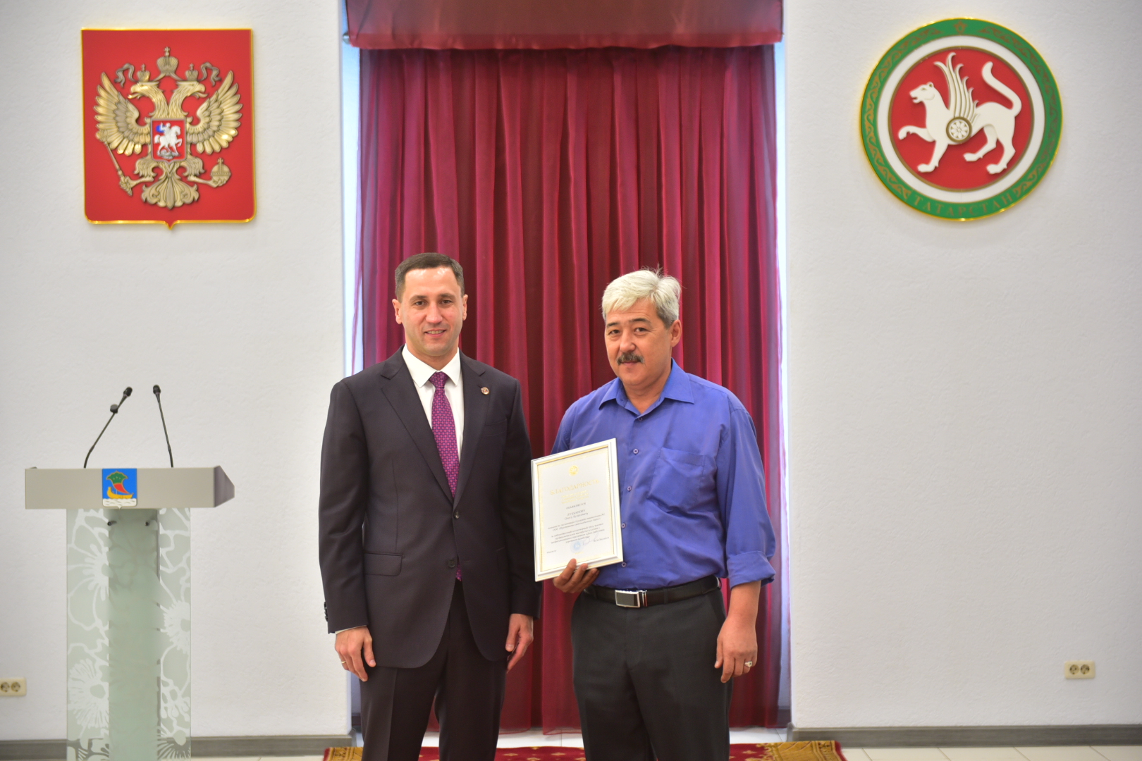За многолетний добросовестный труд и заслуги в профессиональной деятельности благодарностью мэра города отмечены водитель трамвая МУП«Горкоммунхоз» Гульфия Закирова, руководитель проекта «РБР 16» Зиннур Салахов, водитель трамвая-перегонщика МУП «Горкоммунхоз» Надежда Фомичева и генеральный директор «Группы Компаний Альтекс» Сергей Хаюзкин.
