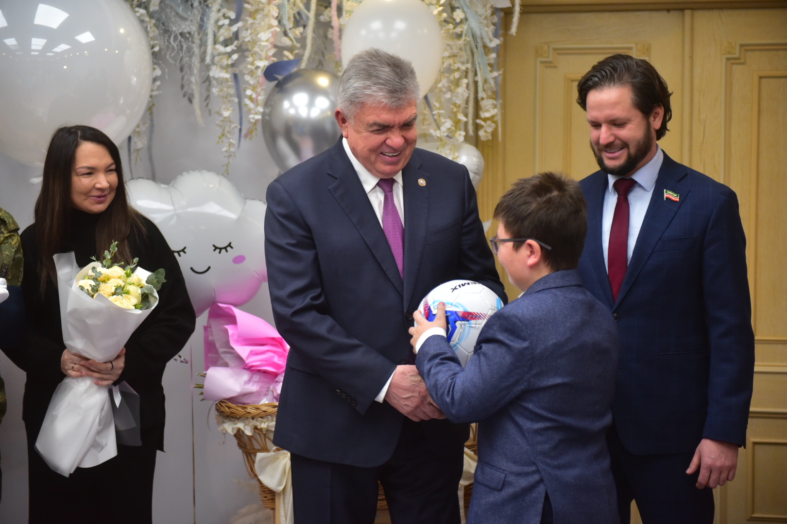 «Сегодня в городе Набережные Челны в нашей большой, дружной, многонациональной семье не только ваш, но и наш общий семейный праздник. Мы не могли пройти мимо этого знаменательного события. Стало хорошей традицией встречать наших малышей, молодых мам, чьи отцы и мужья с честью выполняют свой воинский долг в зоне специальной военной операции. Они – настоящие герои. Все мы гордимся Эмилем – с первых дней специальной военной операции он, как настоящий мужчина, выполняет воинский долг, защищает интересы нашего Отечества», – поздравил молодых родителей и родственников Наиль Магдеев. Мэр пожелал семье здоровья и вручил свидетельство о рождении ребенка, традиционные 100 тыс. рублей от города, подарки для малыша.